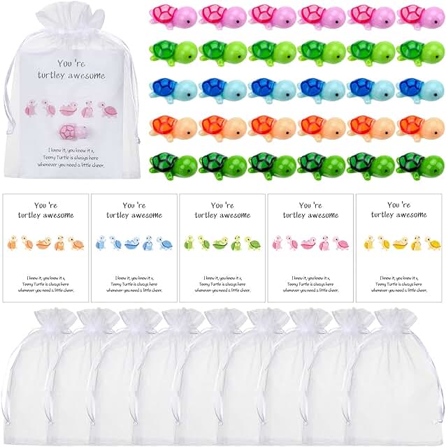 This set includes 100 thank you greeting cards featuring adorable animal puns and messages. Each card is paired with a small sea turtle figure, making it a charming way to show appreciation. The cards are designed with a classic style and come in organza bags, perfect for gifting to coworkers or friends. The set provides a thoughtful and fun way to express gratitude, combining cute animal themes with practical presentation.