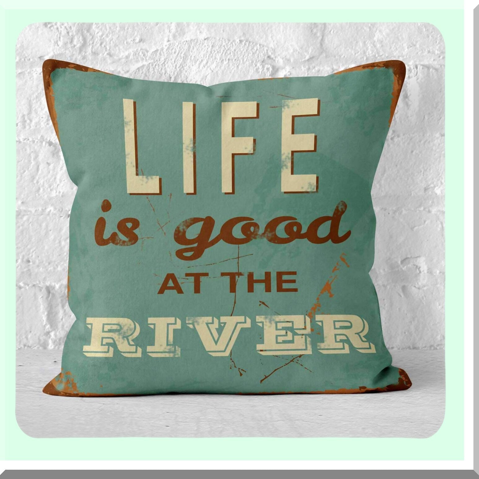 River Retreat Vintage Throw Pillow Cover - Life is Good Collection - 18x18 Square Decorative Cushion Case - River House Decor - Good Vibes Home Accent