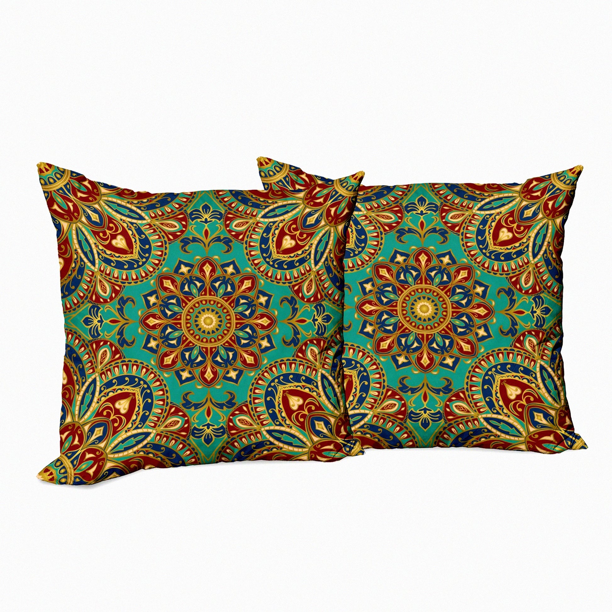 Medieval Motif Double-Sided Throw Pillow Cover Set - Pack of 2, Ethnic Pattern Decorative Cushion Case, Zippered 16" Teal Indigo Digital Print