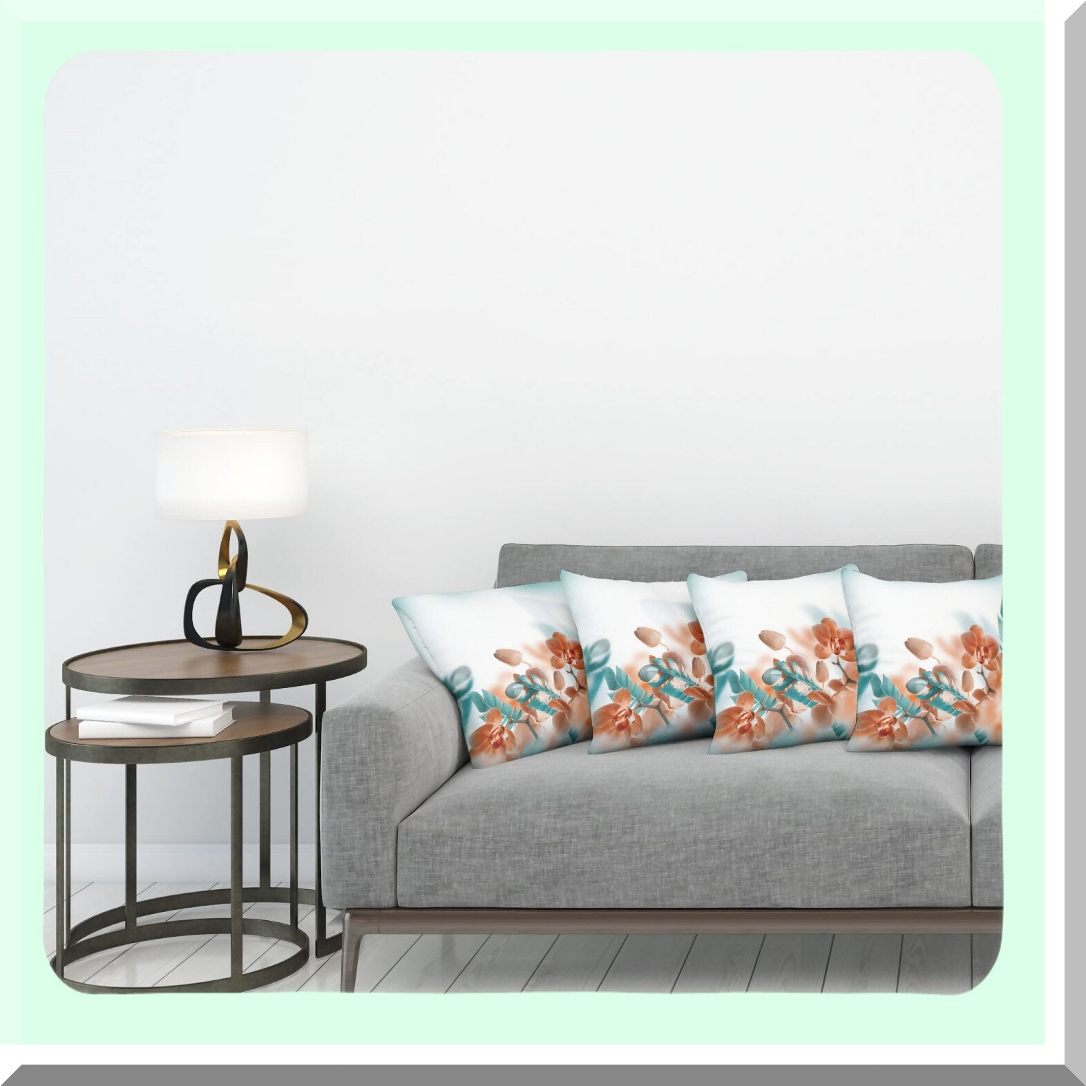 Exotic Orchid Bloom Pillow Set - Tropical Floral Cushion Cover Pack of 4, Modern Art Double-Sided Print, 16" Orange Teal Accent Case