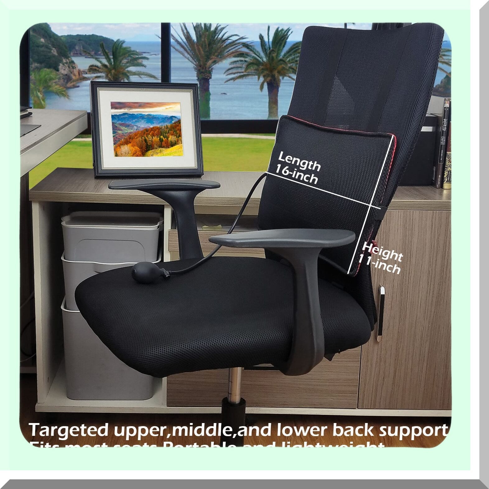 AirFlex Lumbar Support Cushion - Inflatable Pillow for Office Chair & Car Seat, Back Pain Relief with Air Pump - Ergonomic Back Support
