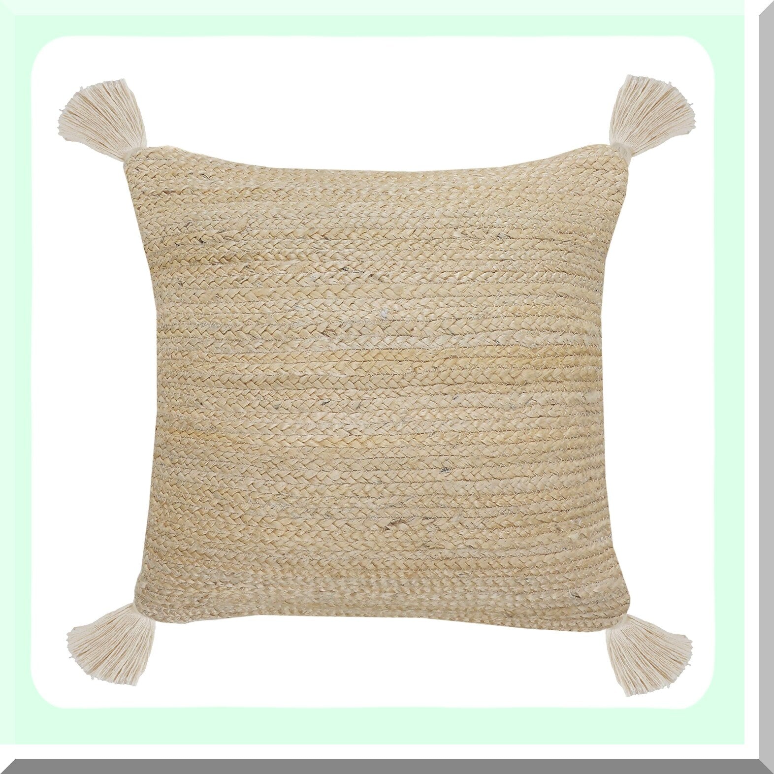 Eco-Friendly Jute Textured Throw Pillow - Sustainable Home Decor Accent - Natural Tan Color - Handwoven Cushion Cover - 1 Count Pack