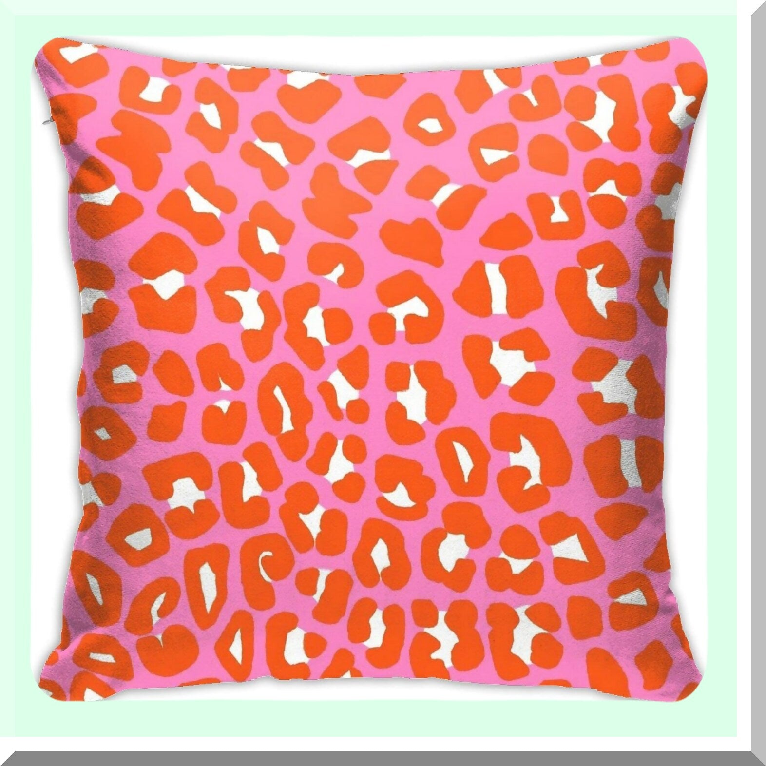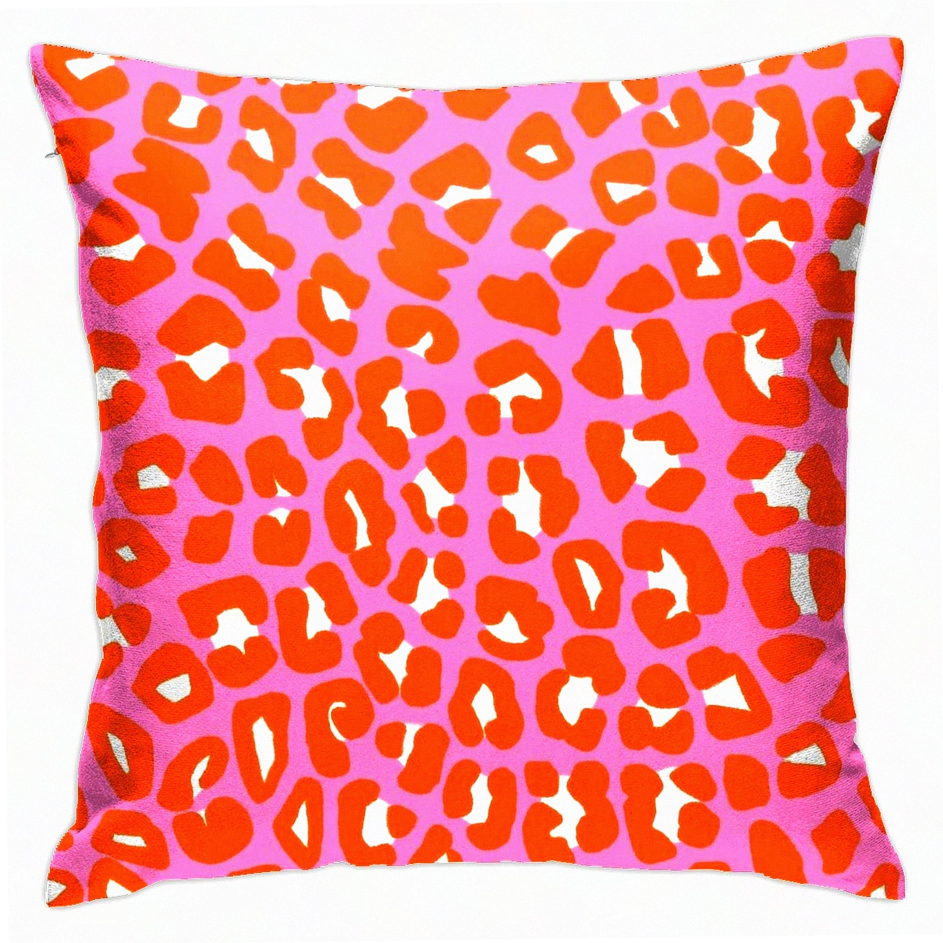 Leopard Spots Preppy Aesthetic Pillow Covers - Decorative Throw Pillowcase for Home Decor - 18x18 Inch Square Couch Cushion Cover - Pink Orange Safari Print