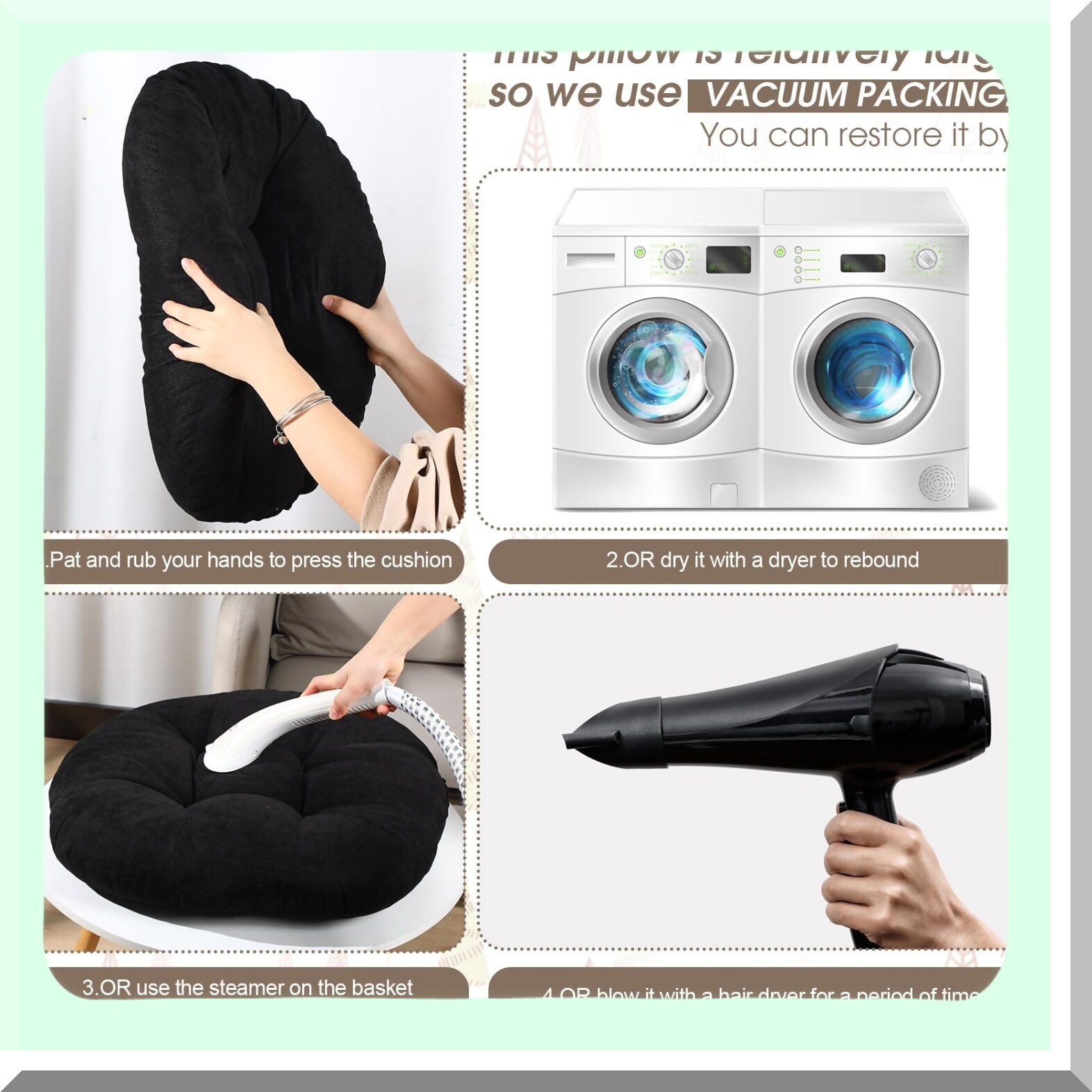 The pack of 2 round seat pillows offers convenience and value, allowing for easy rotation and washing. Made from quality corduroy material, they are durable and stylish, suitable for various settings. The pillows provide quick rebound and support, maintaining their shape even with heavy use. Their versatility allows for use on the floor or on chairs, enhancing comfort wherever they are placed. The vacuum-packed pillows can be easily restored to their original shape with a gentle pat, dryer, or steam iron.