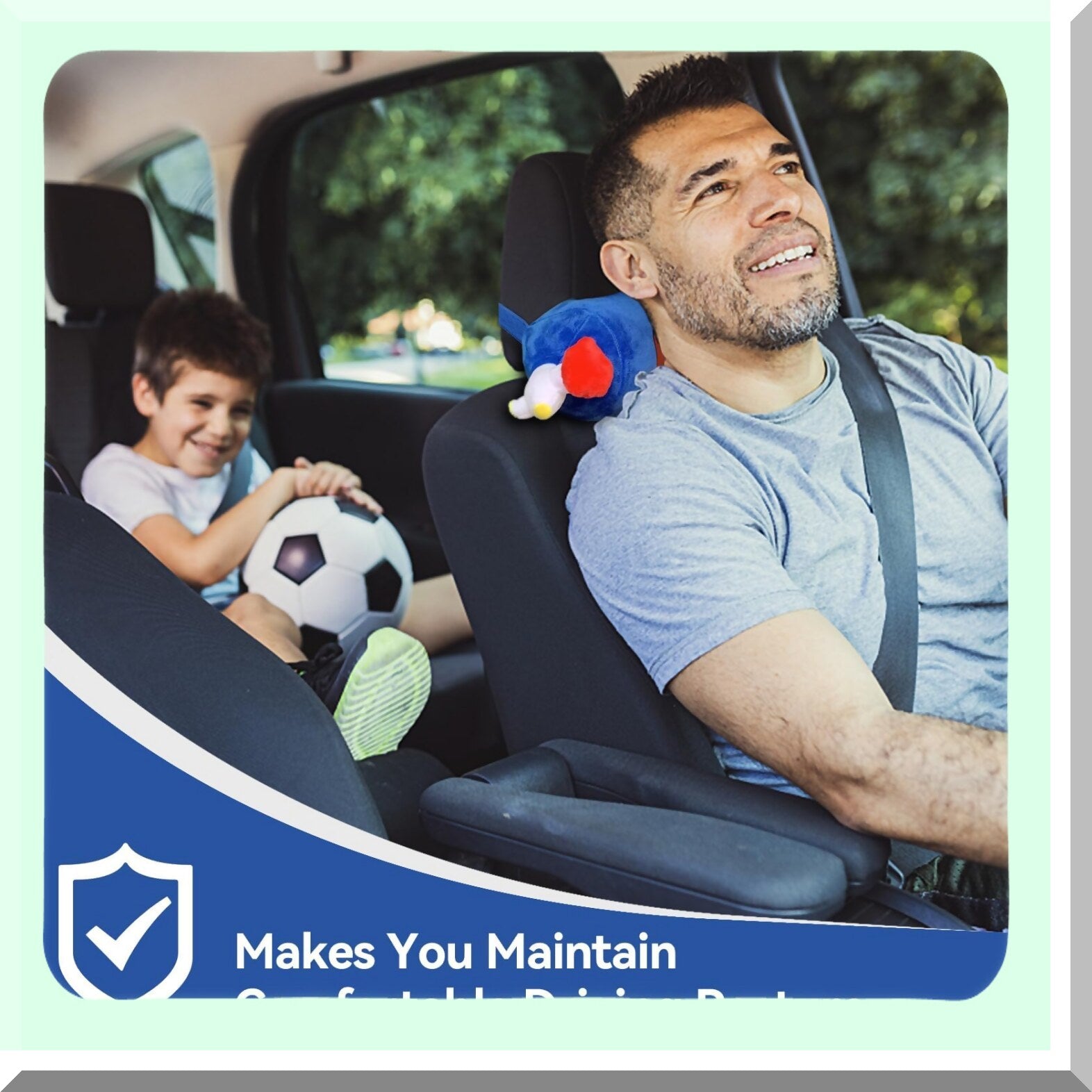 The car headrest pillow is made of high-quality short plush material, providing users with a comfortable and soft support for their head and neck while driving or riding in a car. This can help reduce neck strain and discomfort during long journeys, improving overall comfort and relaxation for passengers. The practical benefits of this product include enhanced support for the head and neck, which can lead to a more enjoyable and less tiring travel experience. The use of quality materials ensures durability and long-lasting comfort for users.