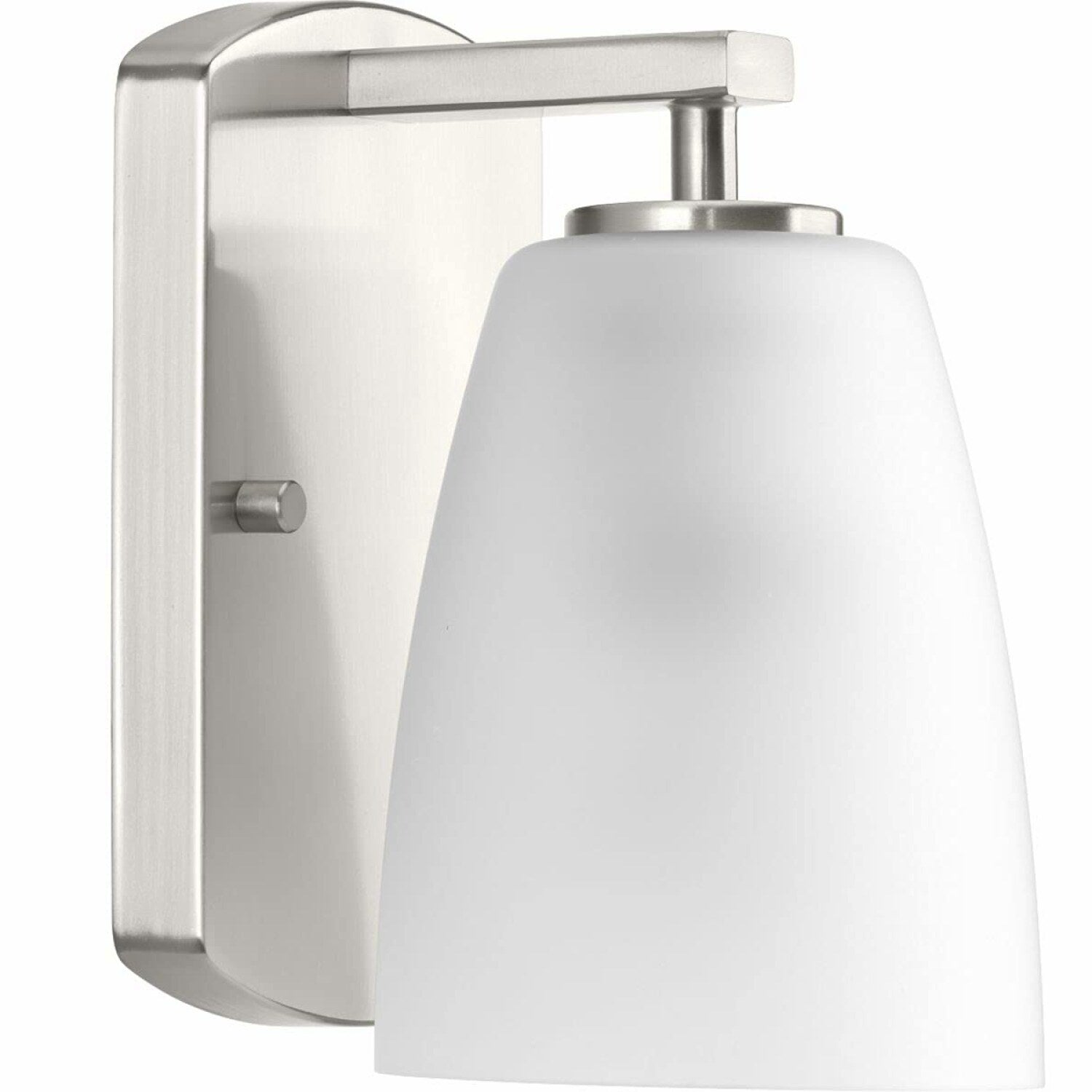 The Leap Bath Vanity in Nickel features a sleek, contemporary design with tapered etched glass shades that enhance its modern aesthetic. This one-light bath vanity is finished in a brushed nickel tone, providing a stylish and versatile look suitable for various bathroom decors. Crafted to deliver both functionality and visual appeal, it offers reliable illumination for your space. The fixture comes with a one-year limited warranty, ensuring your satisfaction and peace of mind. Professional after-sales customer service support is included to assist with any questions or concerns.