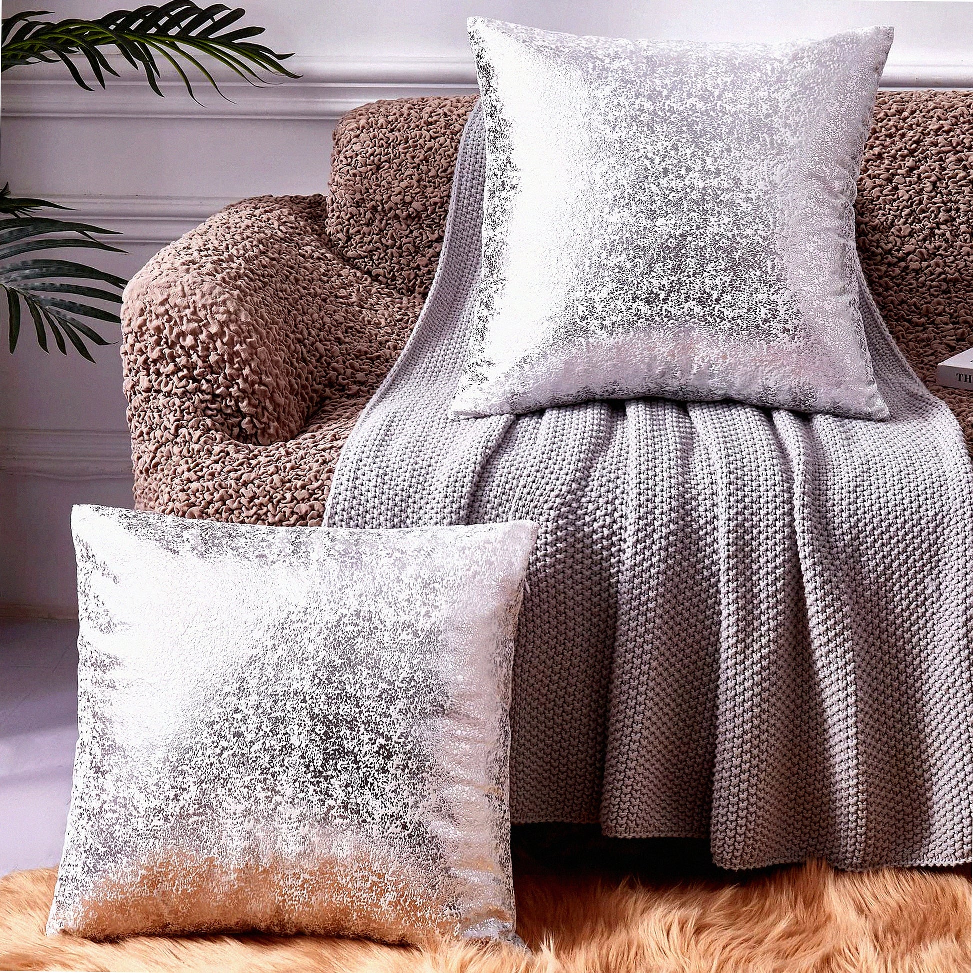 Silver Velvet Bliss Pillow Covers - Set of 2 White 18x18 Decorative Square Throw Pillows for Home Decor. Ideal for Bedroom, Living Room, Couch, Bed, and Sofa. Luxurious White and Silver Design.