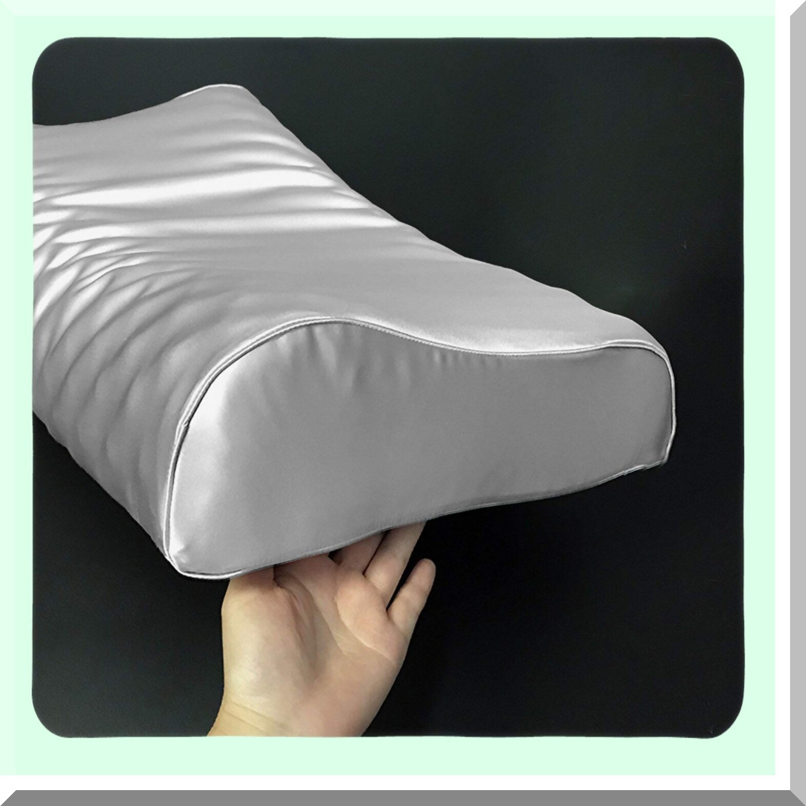 SilkWave Memory Foam Pillowcase - Mulberry Silk Cover for Neck Pillow, Cervical Pillow, Contour Pillow - Smooth Grey Silk Case 21 x 14.5 inch
