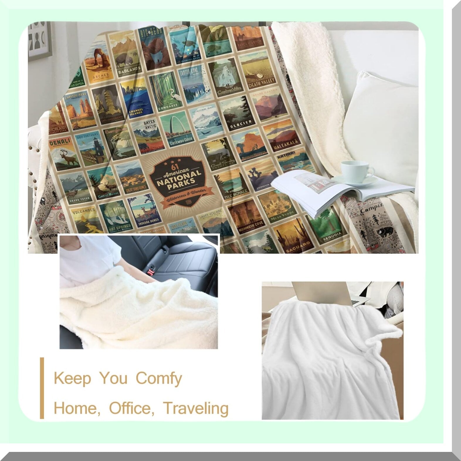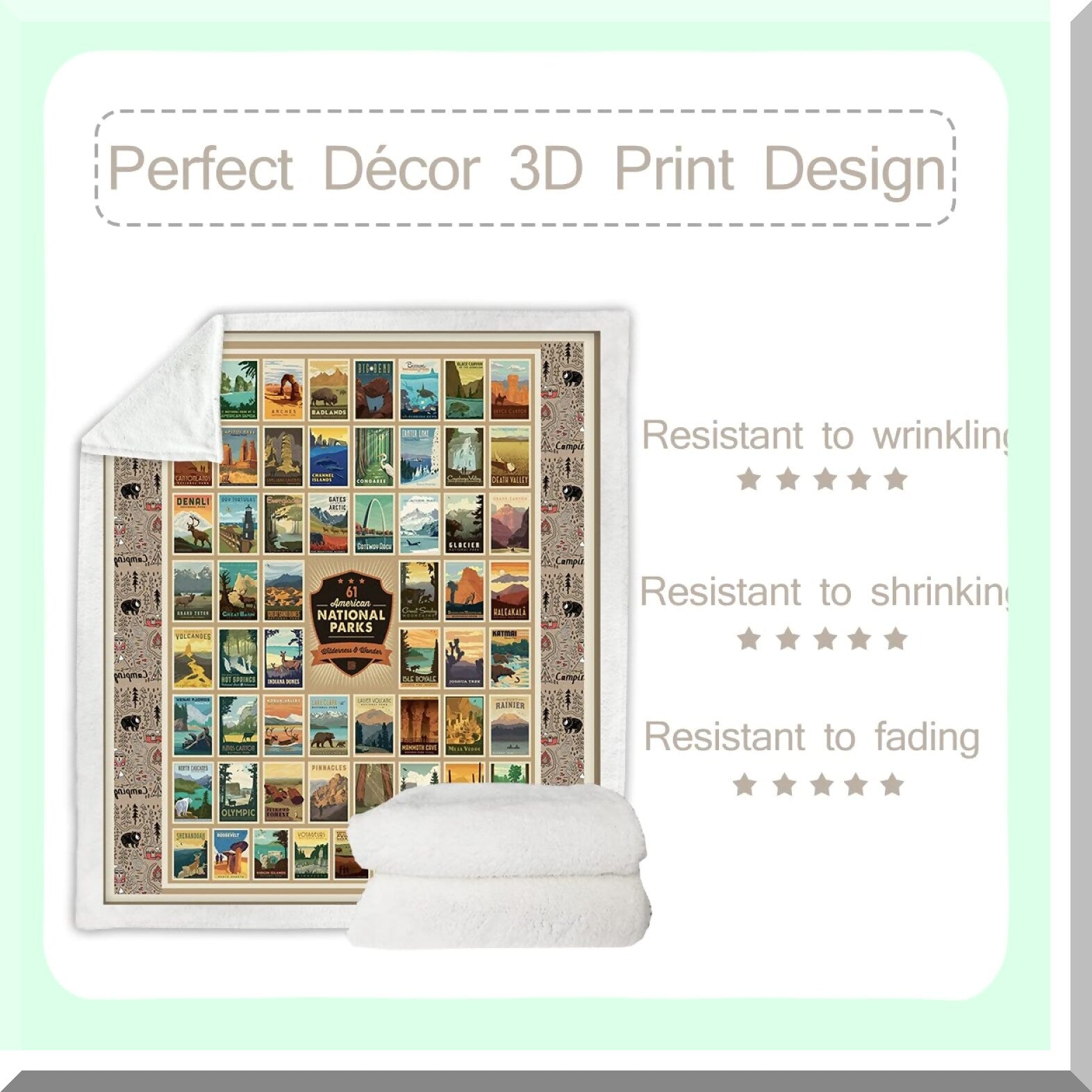 Vintage National Parks Sherpa Blanket - Fluffy Microfiber Fleece Throw, Lightweight Twin 60"x80" for Bed or Couch"