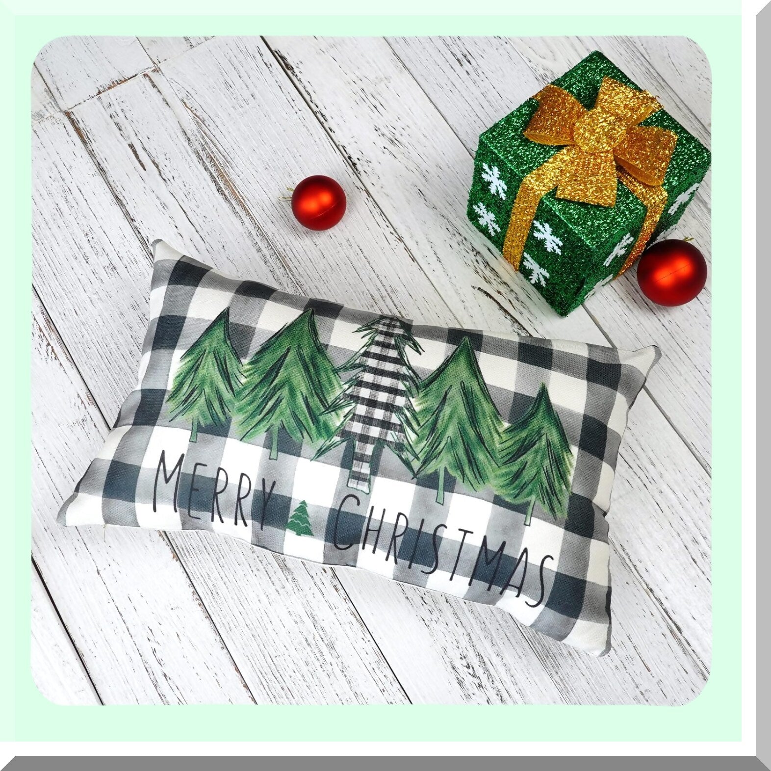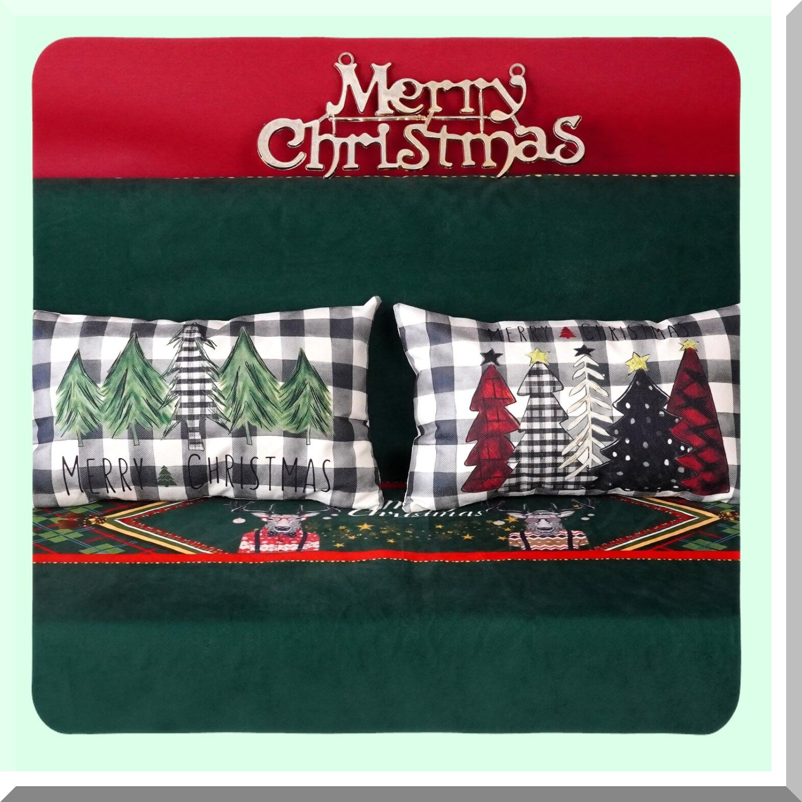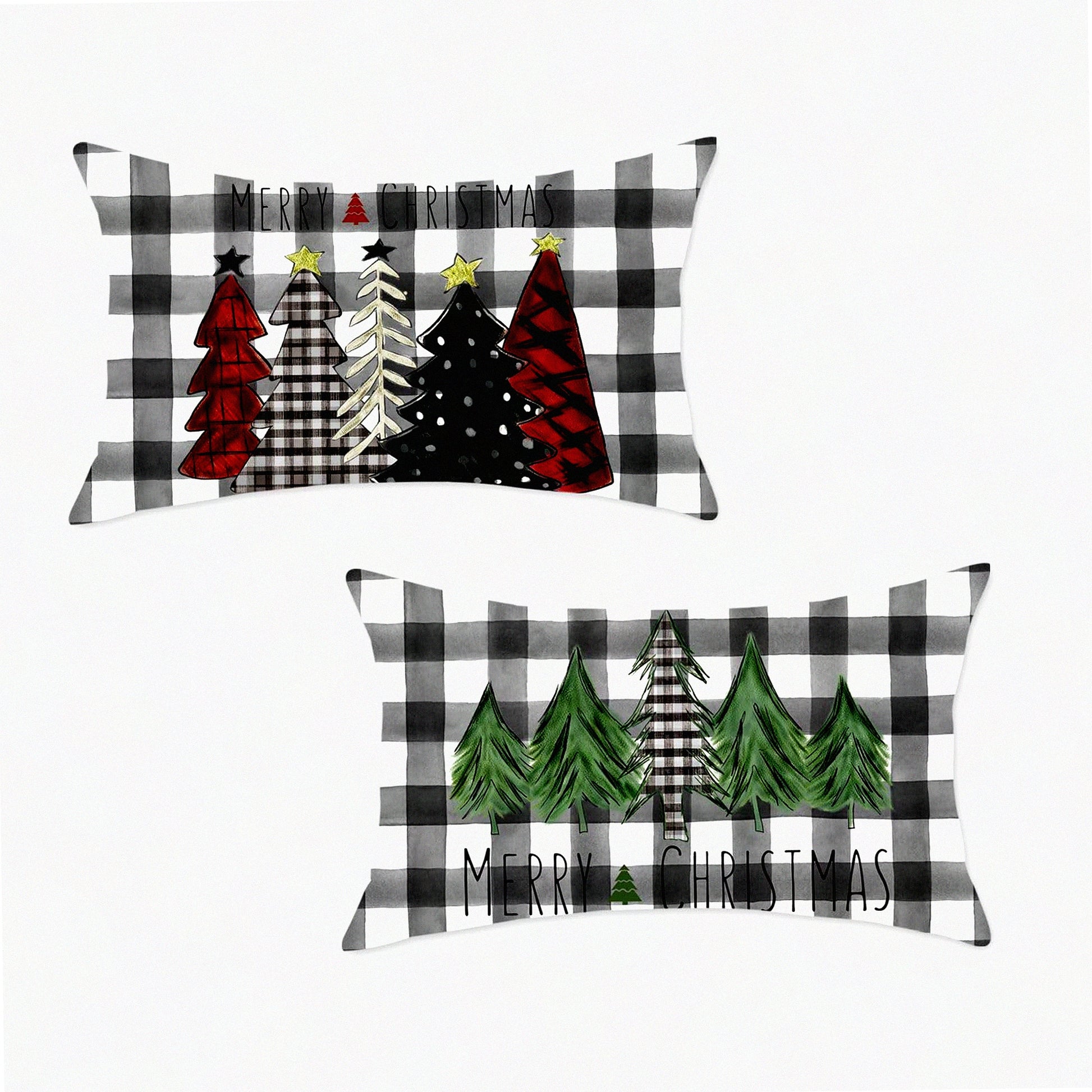 Winter Wonderland Lumbar Pillow Covers - Set of 2 Red Black Green Buffalo Plaid Tree Decorative Cases 12x20 Inch for Holiday Decorations