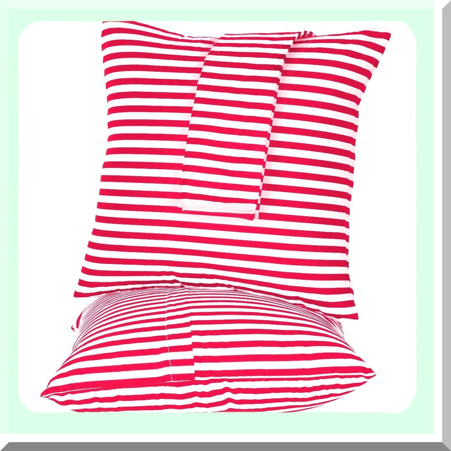 Striped Cotton Square Pillow Covers Set - 2 Pack Red 18x18 Inch - Sofa Bedroom Car Cushion Cases - Decorative Pillowcases - 100% Cotton