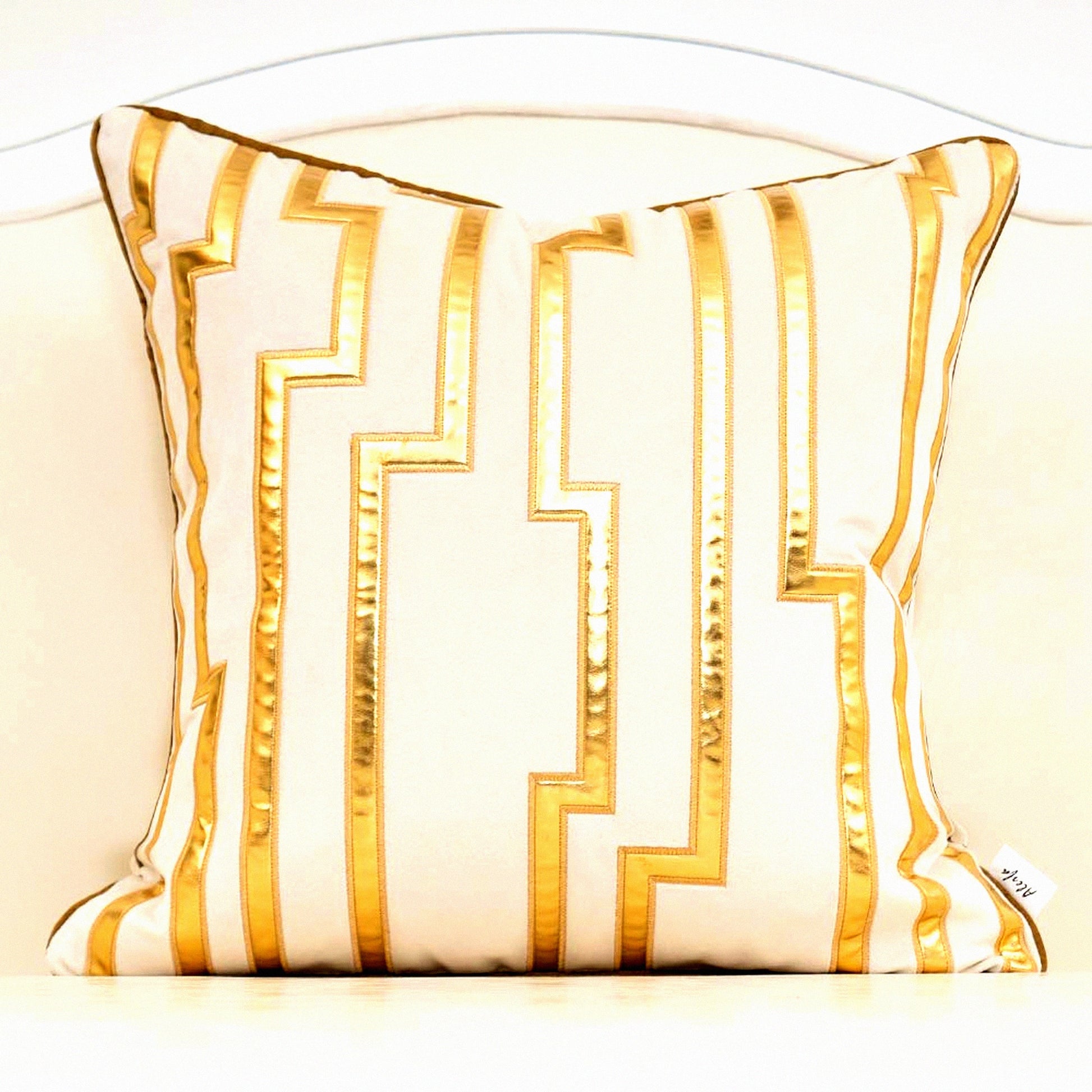 Luxury Gold Stripe Geometric Leather Pillow Covers - European Decorative Cushion Cases for Living Room & Bedroom - 20x20 Inch Square