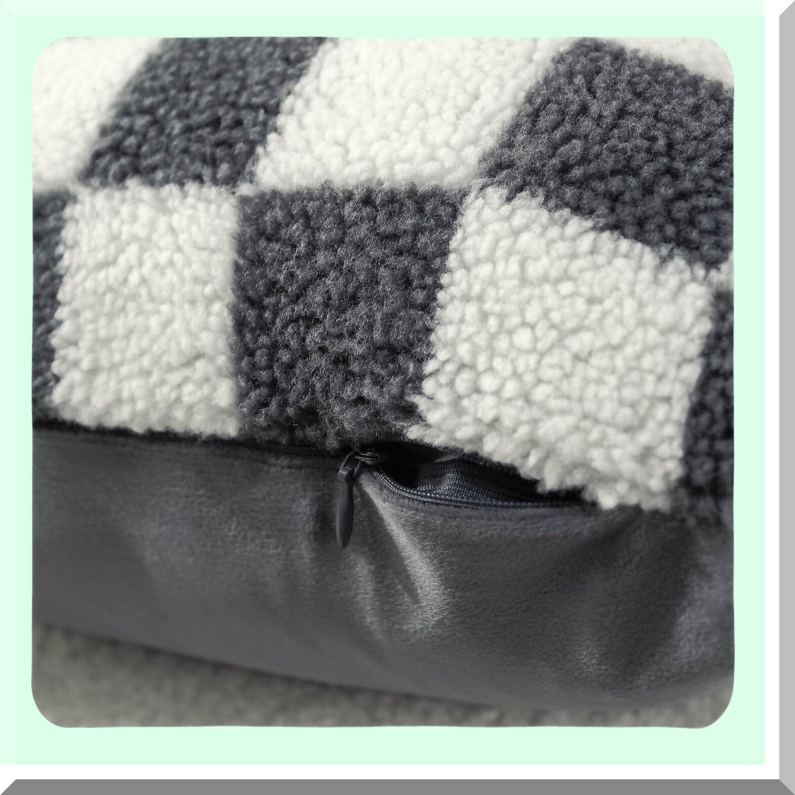 Luxury Wool Checkerboard Pillow Covers - Set of 2 Decorative Throw Cushion Cases for Couch Sofa Bedroom - Super Soft 20 x 20-Inch Gray