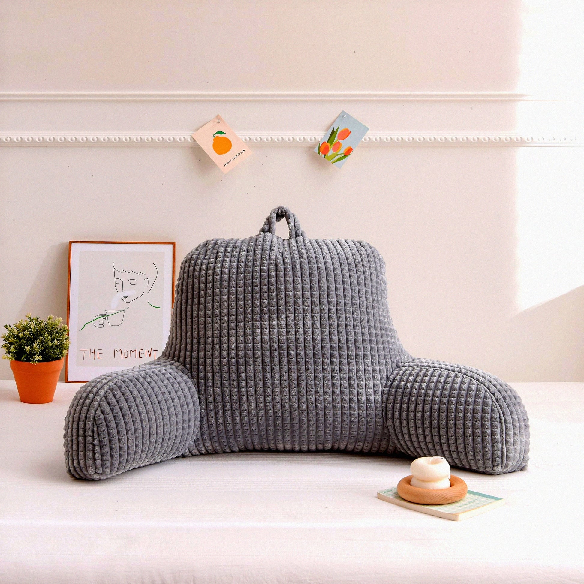 ComfortMax Backrest Pillow - Large Adult Reading Cushion with Arms & Bed Wedge Support - Gray Lounge Pillow for Sitting Up in Bed - Over Size