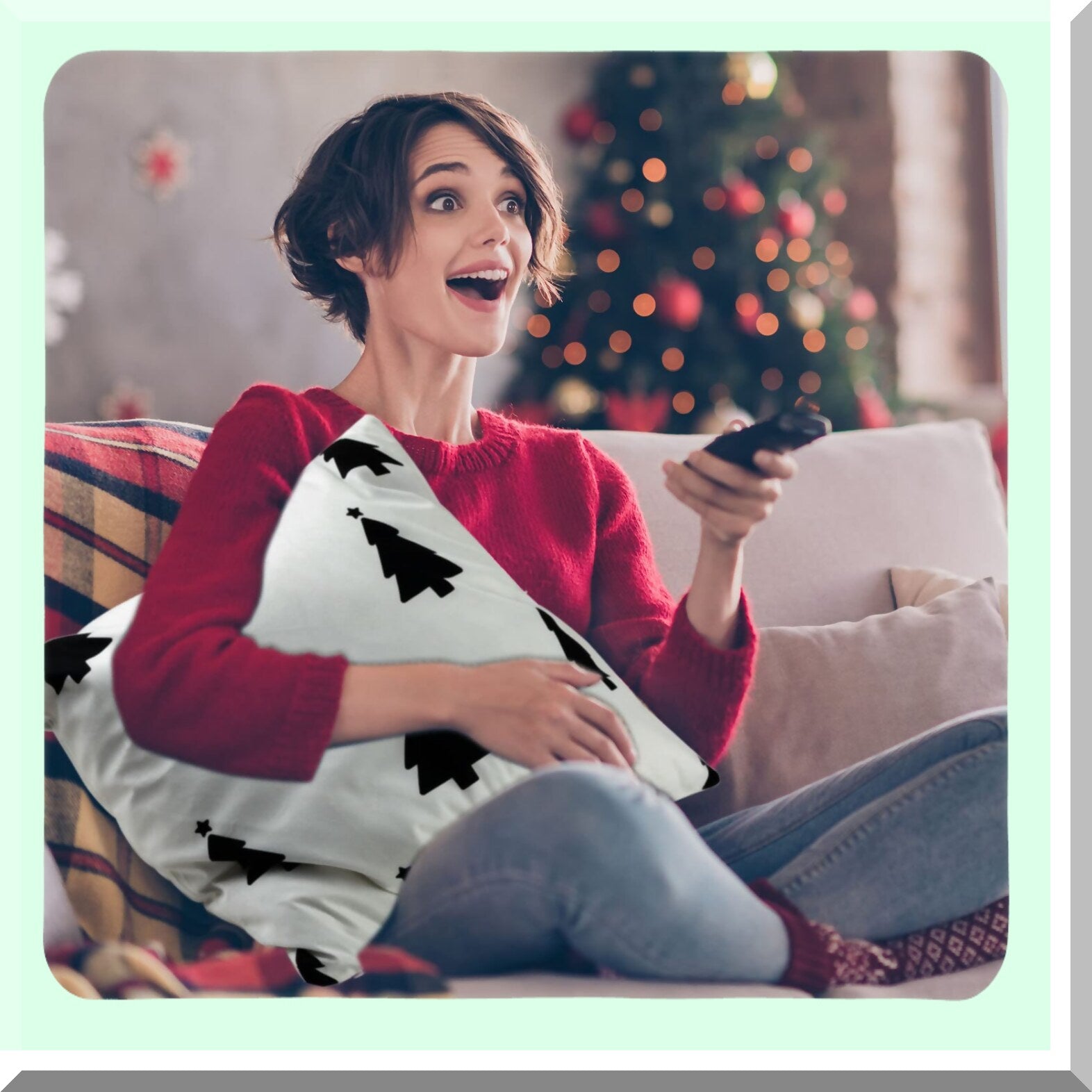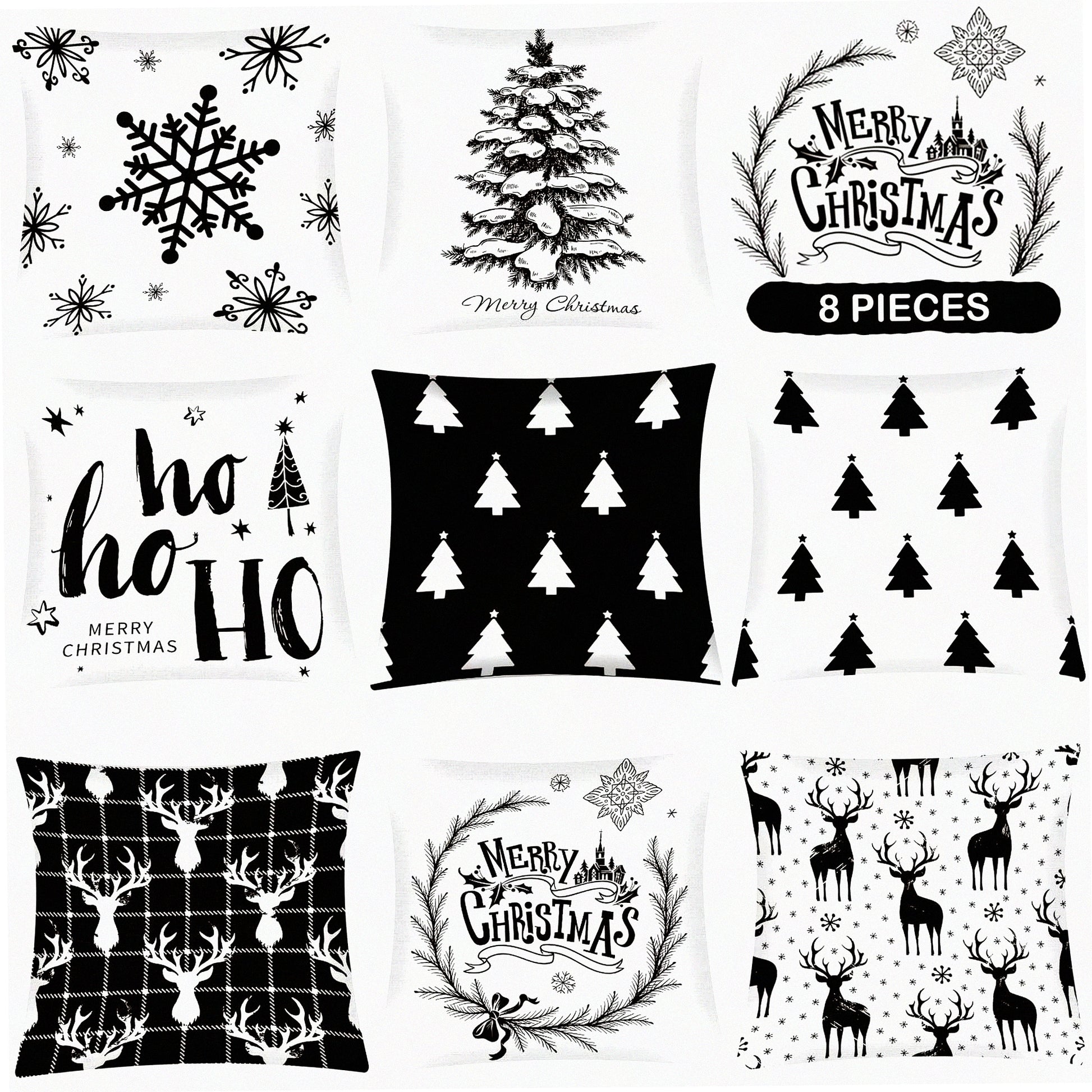 Winter Wonderland Pillow Cover Set - Reindeer, Snowflake, Tree Design - 18x18 Inch Cushion Covers for Sofa & Bed - Retro Christmas Decor - Set of 8