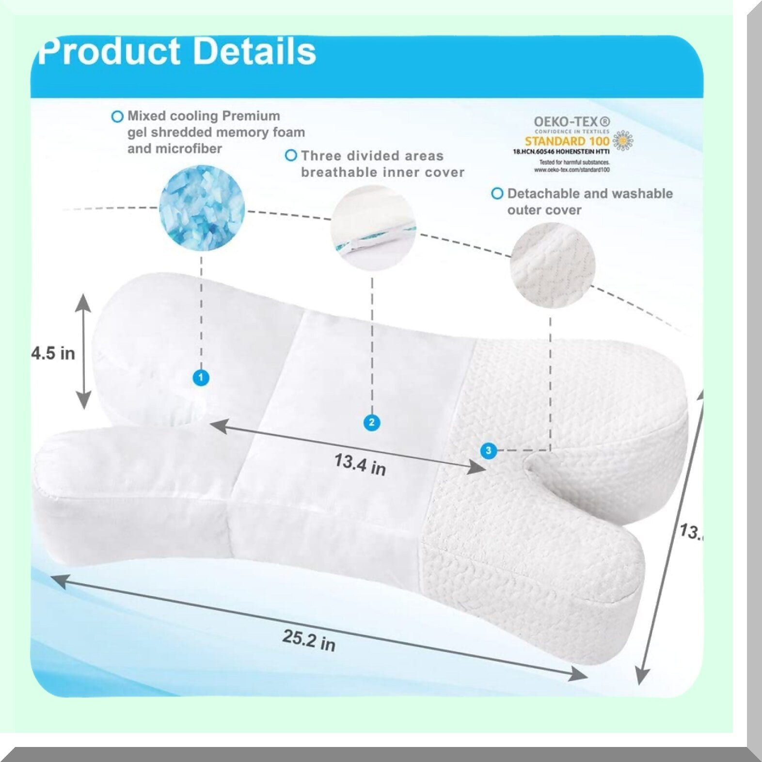 WrinkleGuard Gel Memory Foam Side Sleeper Pillow - Neck Pain Relief & Anti-Aging Support for Side, Back, and Stomach Sleepers - Regular White Style