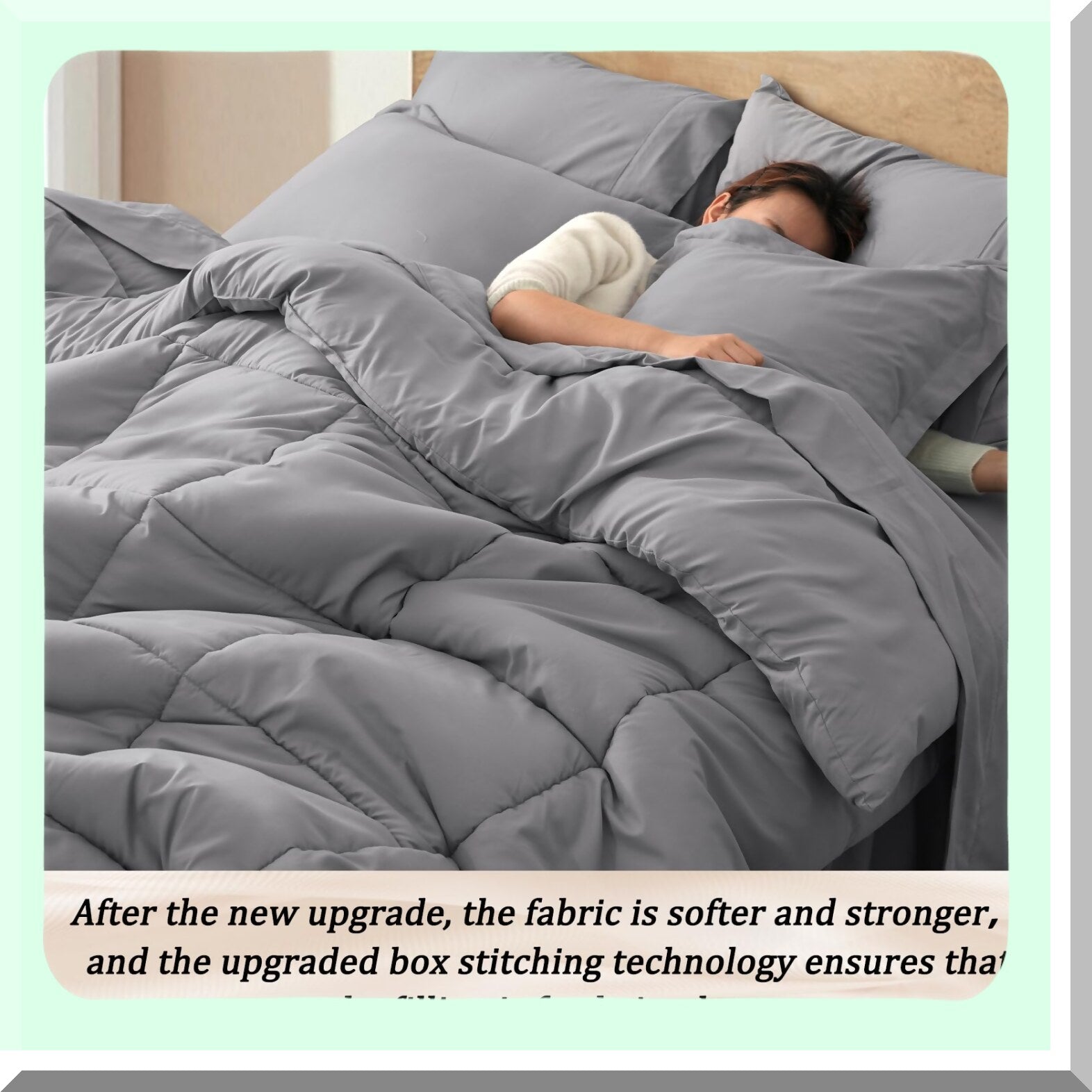 UltraSoft Grey Queen Comforter Set - 7 Piece Bedding Bundle with Sheets, Pillowcases, Shams - All Season Noiseless Bed in a Bag - 18" Sheet Set