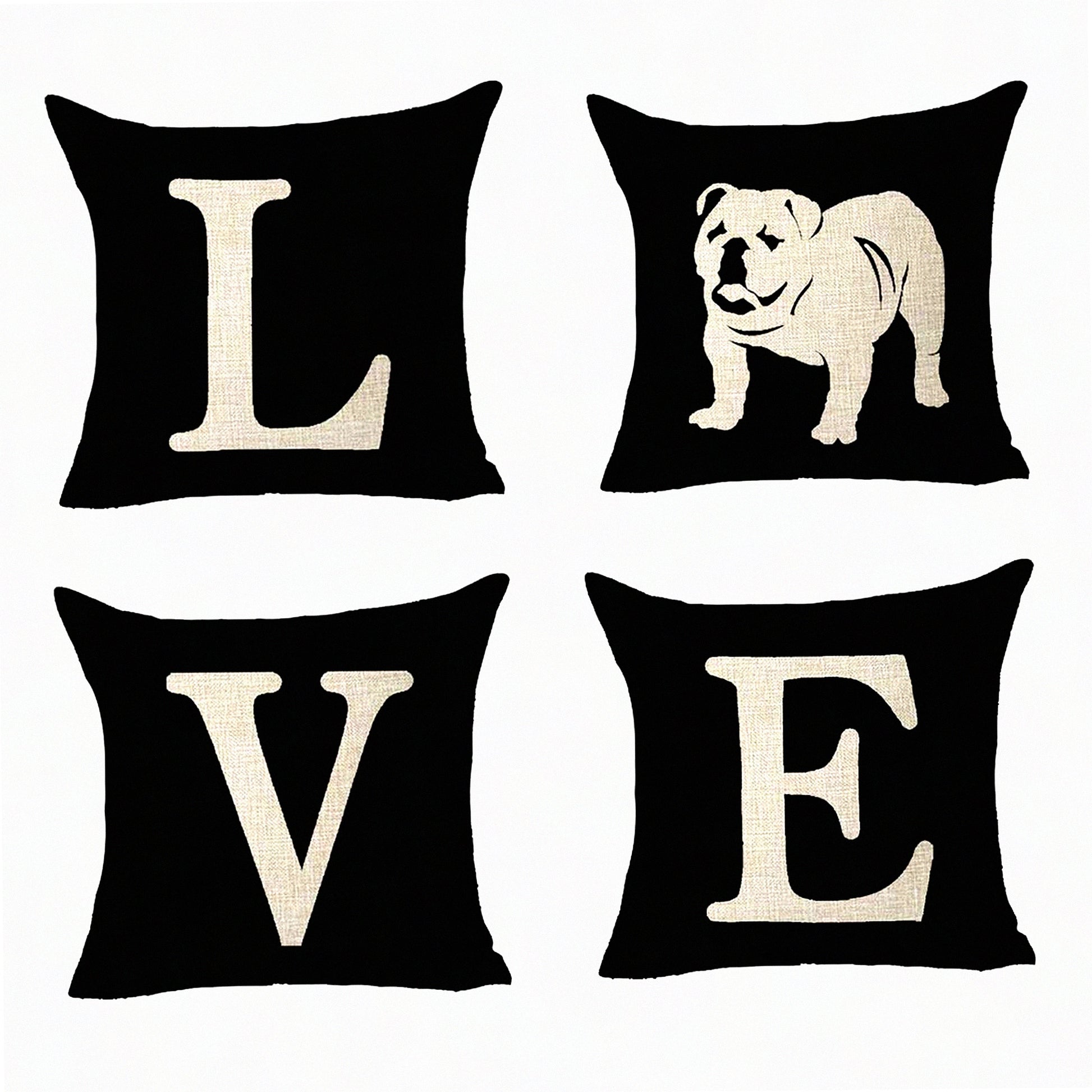 The set of 4 items features a design with the theme of "LOVE" and an English Pug Dog on a black background. Made from cotton linen, these items offer practical benefits such as durability and comfort. The material is breathable and easy to clean, making it suitable for everyday use. The design adds a decorative touch, enhancing the aesthetic appeal of any space. Users will appreciate the combination of functionality and style, making these items a practical and attractive addition to their home.