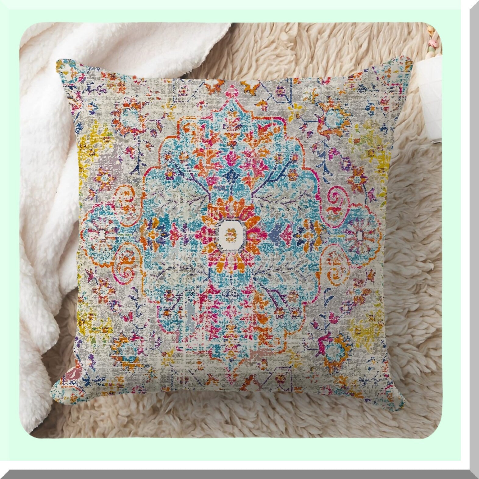 Tribal Carpet Boho Pillowcase - Oriental Decor Cushion Cover for Living Room & Bedroom - Soft Ethnic Bohemian Pillow Cover 18X18 Inch