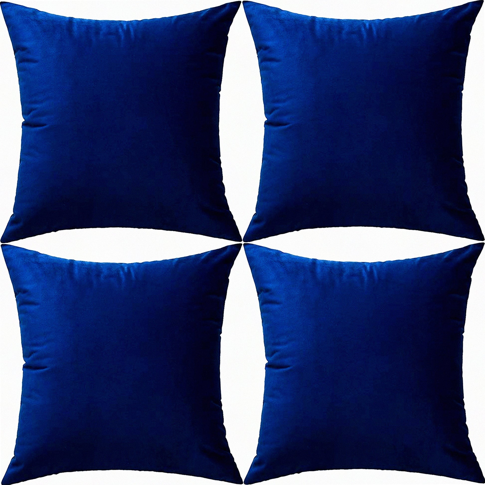 Luxury Navy Blue Velvet Pillowcase Set - 22x22 Decorative Cushion Covers for Sofa, Bed, Couch - Pack of 4 Throw Pillow Cases