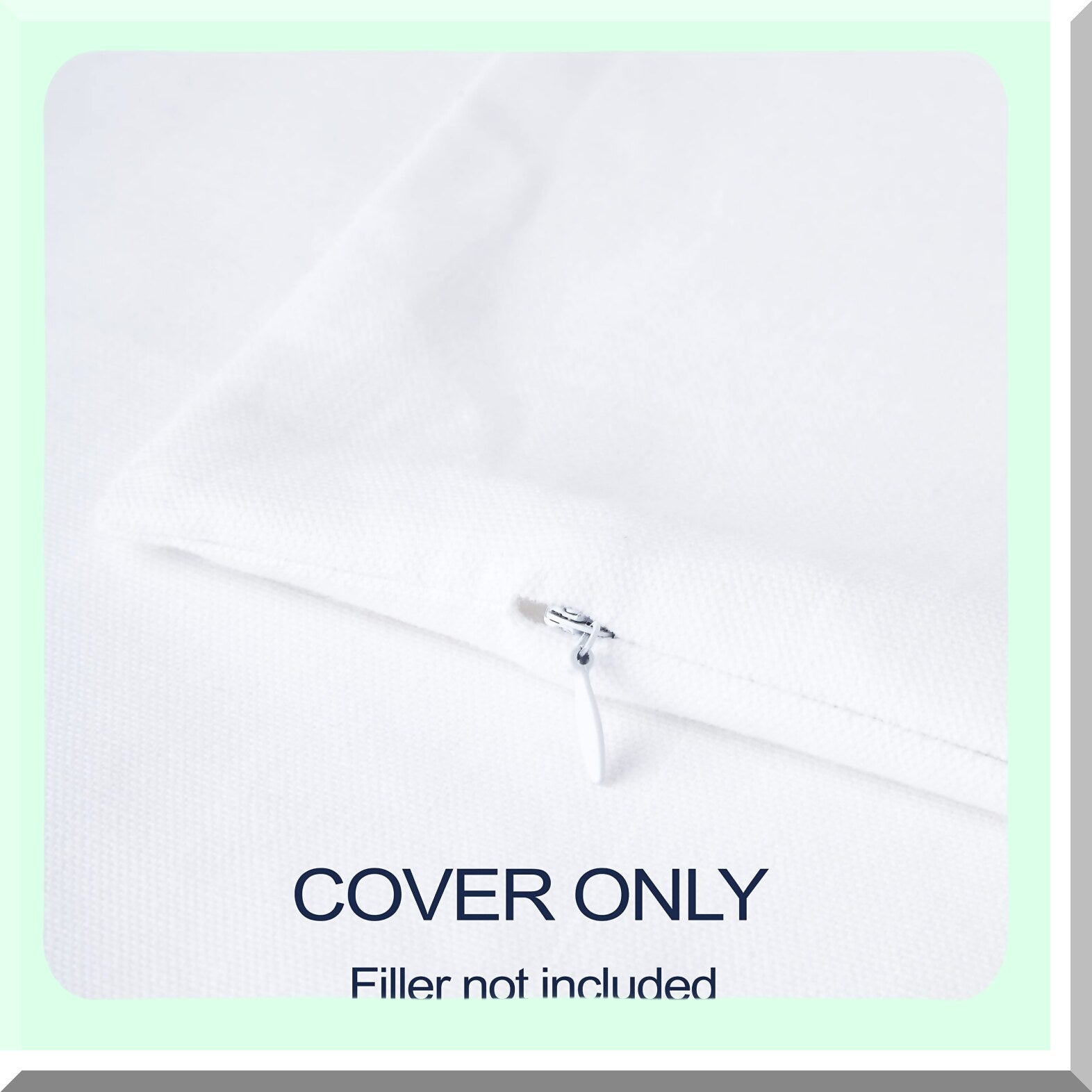 White Canvas Square Throw Pillow Cover Set - 18x18 Inch 2pc Solid Dyed Cotton Accent Cushion Case for Couch Sofa Chair Bed Home Decor - Only Covers