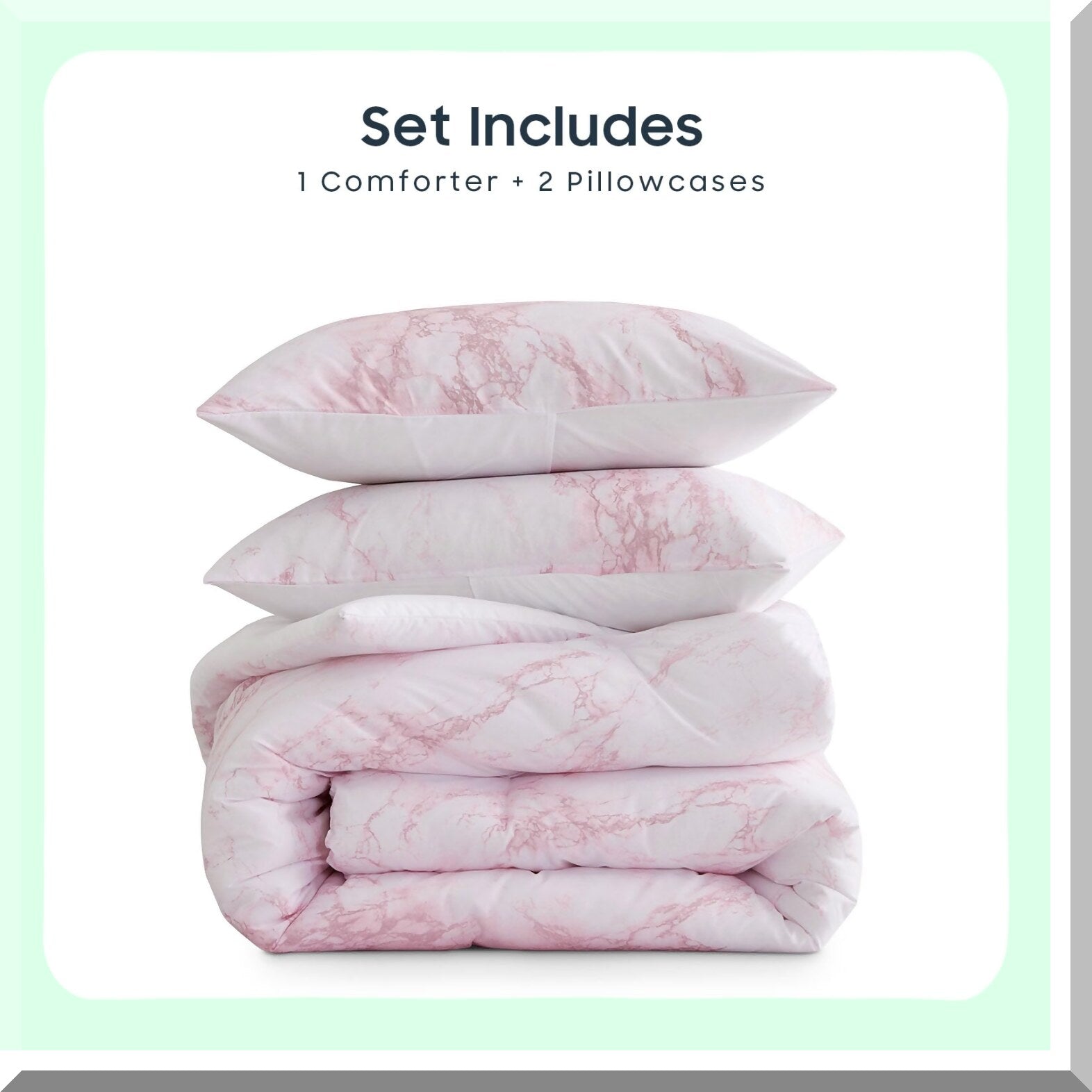Blush Marble Dream Queen Comforter Set - 3 Piece Lightweight Bedding for Women & Girls - Cute Neutral Aesthetic in Pink & White - Queen Size