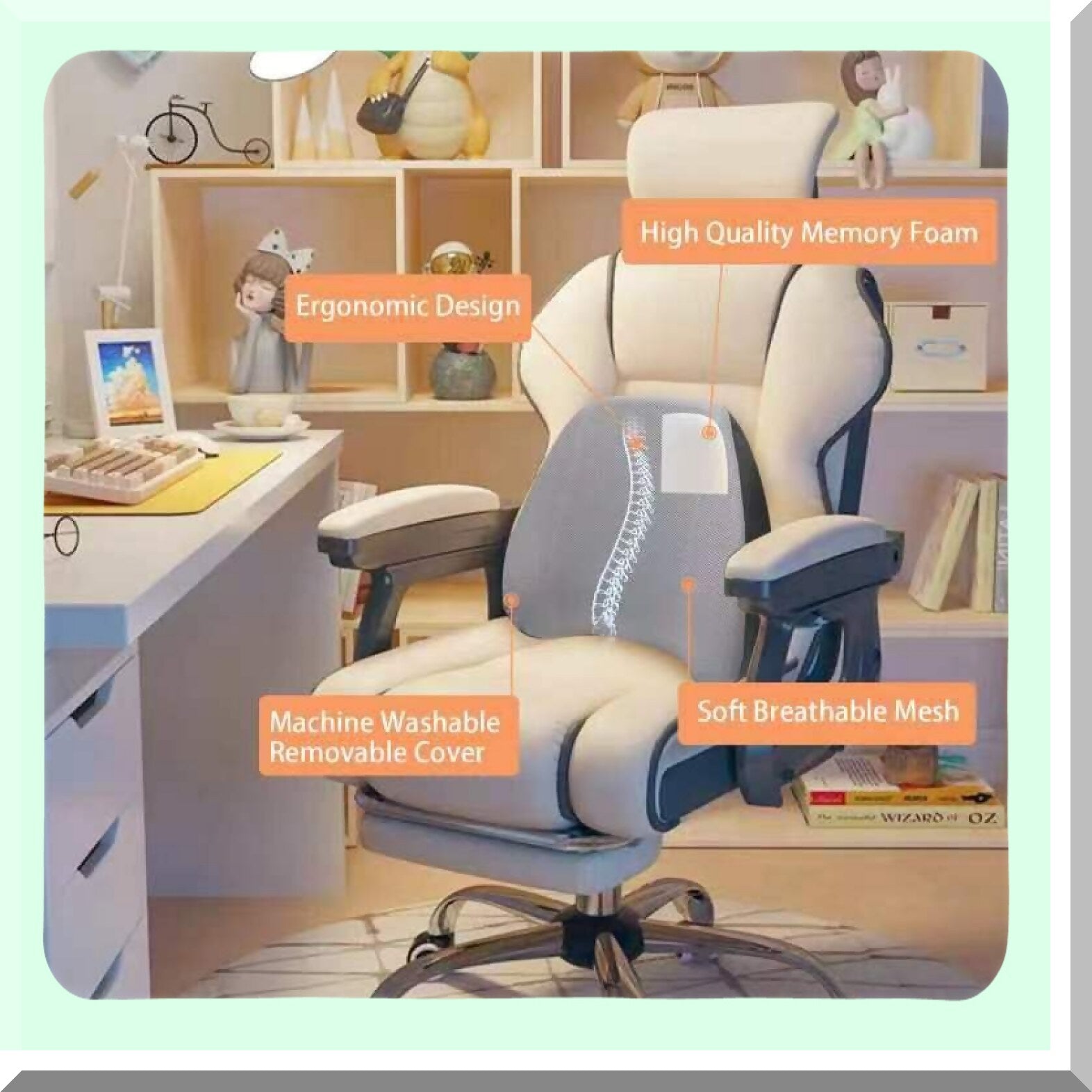 MemoryFoam LumbarEase Pillow - Adjustable Strap, Breathable Cover, Ergonomic Design for Back Pain Relief & Softness Support - Gray
