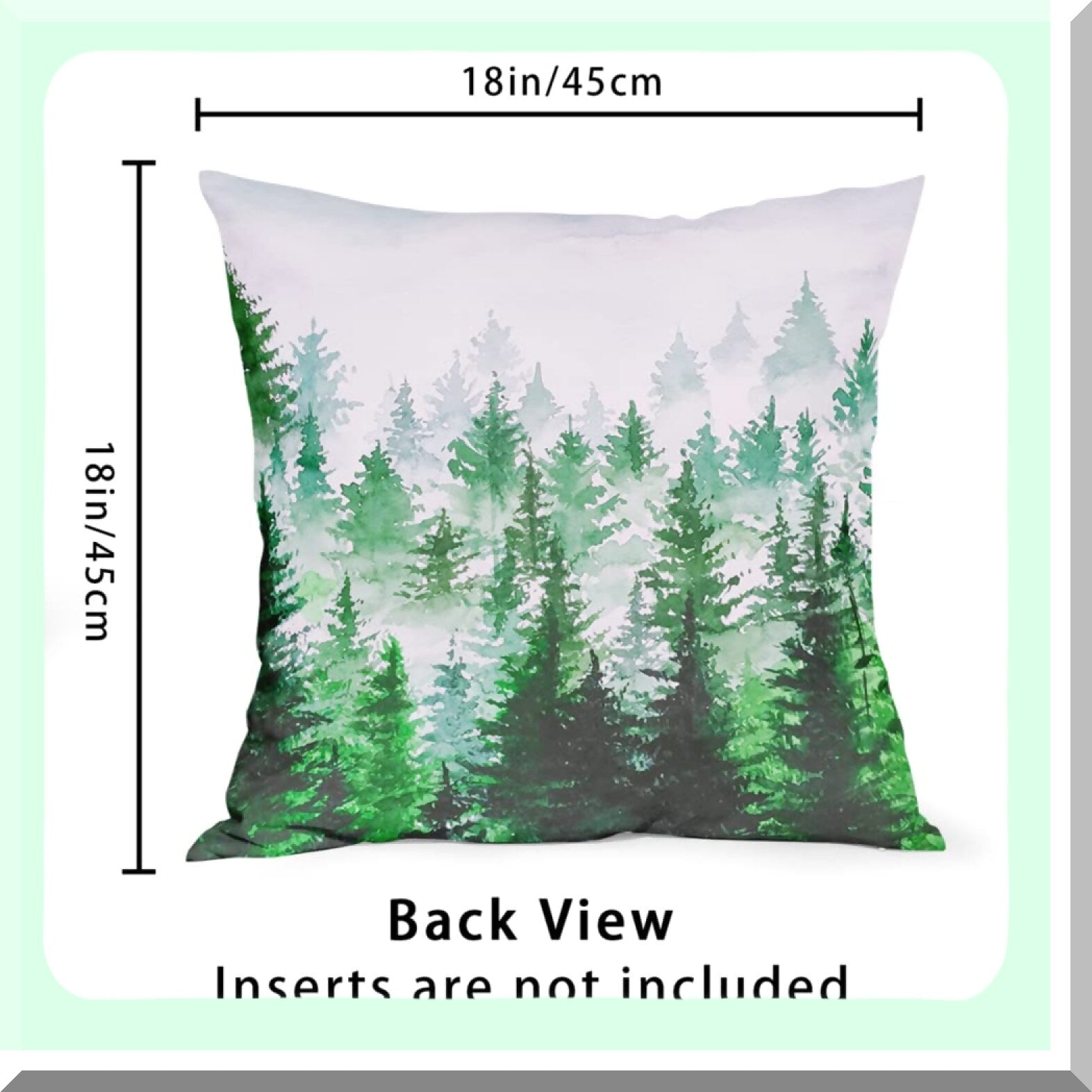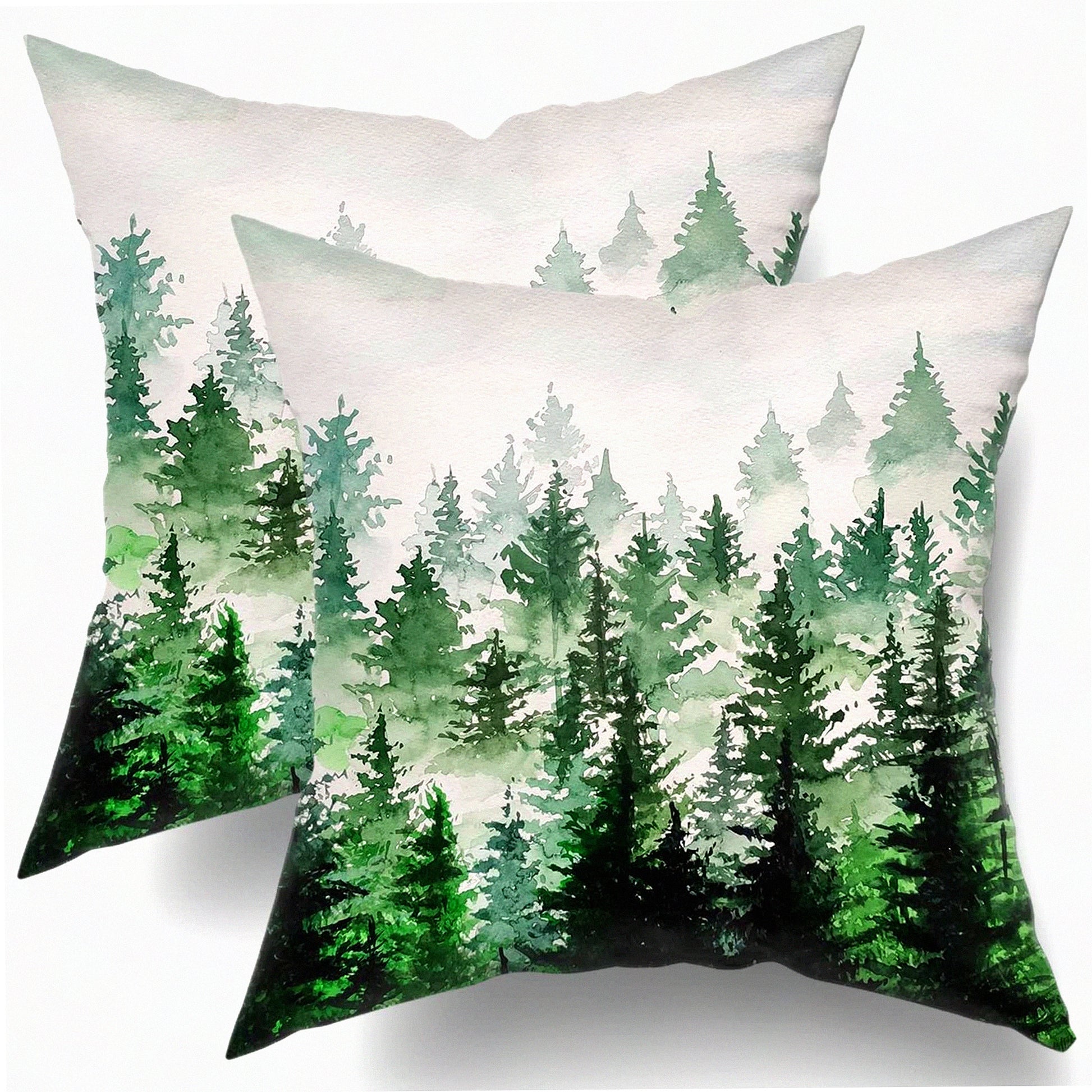 Mountain Forest Green Pillow Covers - Set of 2 | Birch Tree Decorative Throw Pillow Protectors 18x18 Inches | Cotton Cushion Covers with Hidden Zipper for Home Bedroom Décor