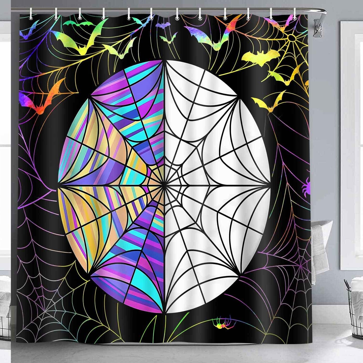 This shower curtain features a gothic art stained glazed tile design with a spooky Wednesday stained glass window pattern, adding a unique artistic touch to your bathroom decor. Made from upgraded polyester, it measures 72 inches by 72 inches and includes 12 free white C-type plastic hooks for easy hanging. The HD digital printing ensures vivid colors, crisp lines, and no fading, providing a bright and lively atmosphere. Environmentally friendly and durable, the curtain is PVC-free, odorless, and safe for your family’s health. Its lightweight material allows for easy use and care, with rust-resistant metal grommets for secure hanging. The weighted hem helps keep the curtain in place, hanging evenly. It can be hand washed or machine washed in cold water and hung dry. Please note that due to packaging, wrinkles may occur but will smooth out with use. This decorative curtain is perfect for adding a spooky, artistic vibe to your bathroom.