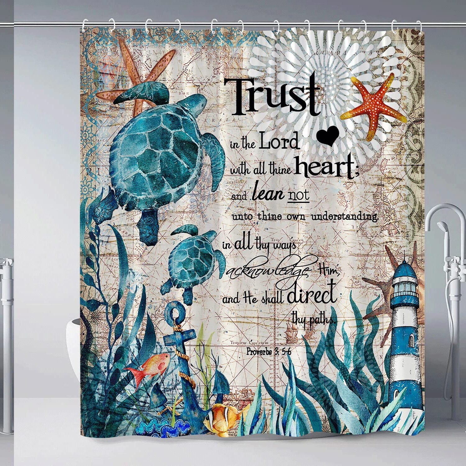 Green Sea Turtle Shower Curtain 70x70 Inch