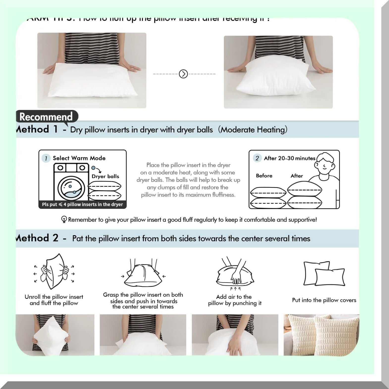 FluffySquare Pillow Set - Premium Inserts for Living Room Sofa Couch Bed - Decorative Throw Pillows - Sham Stuffer - 18x18 - Pack of 2
