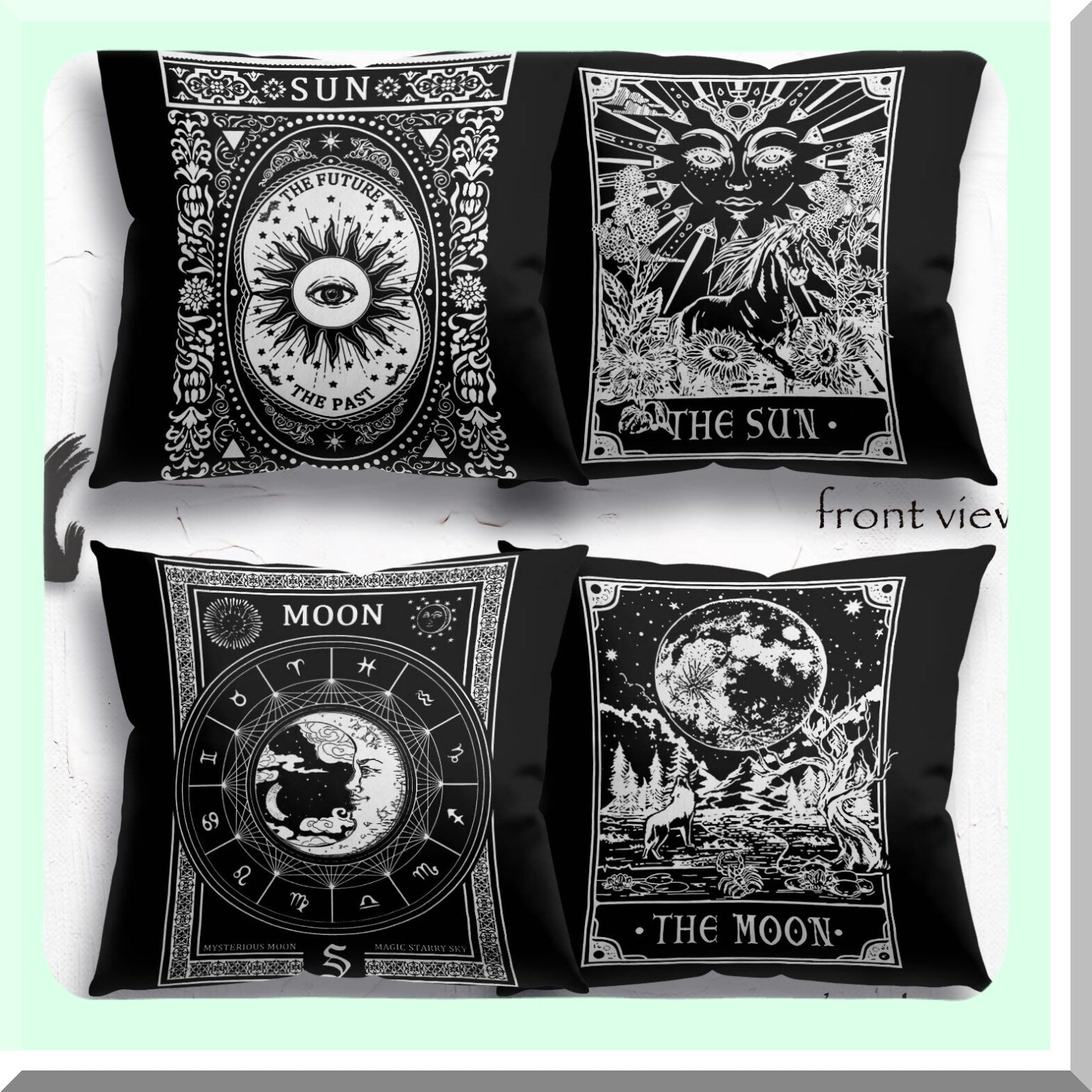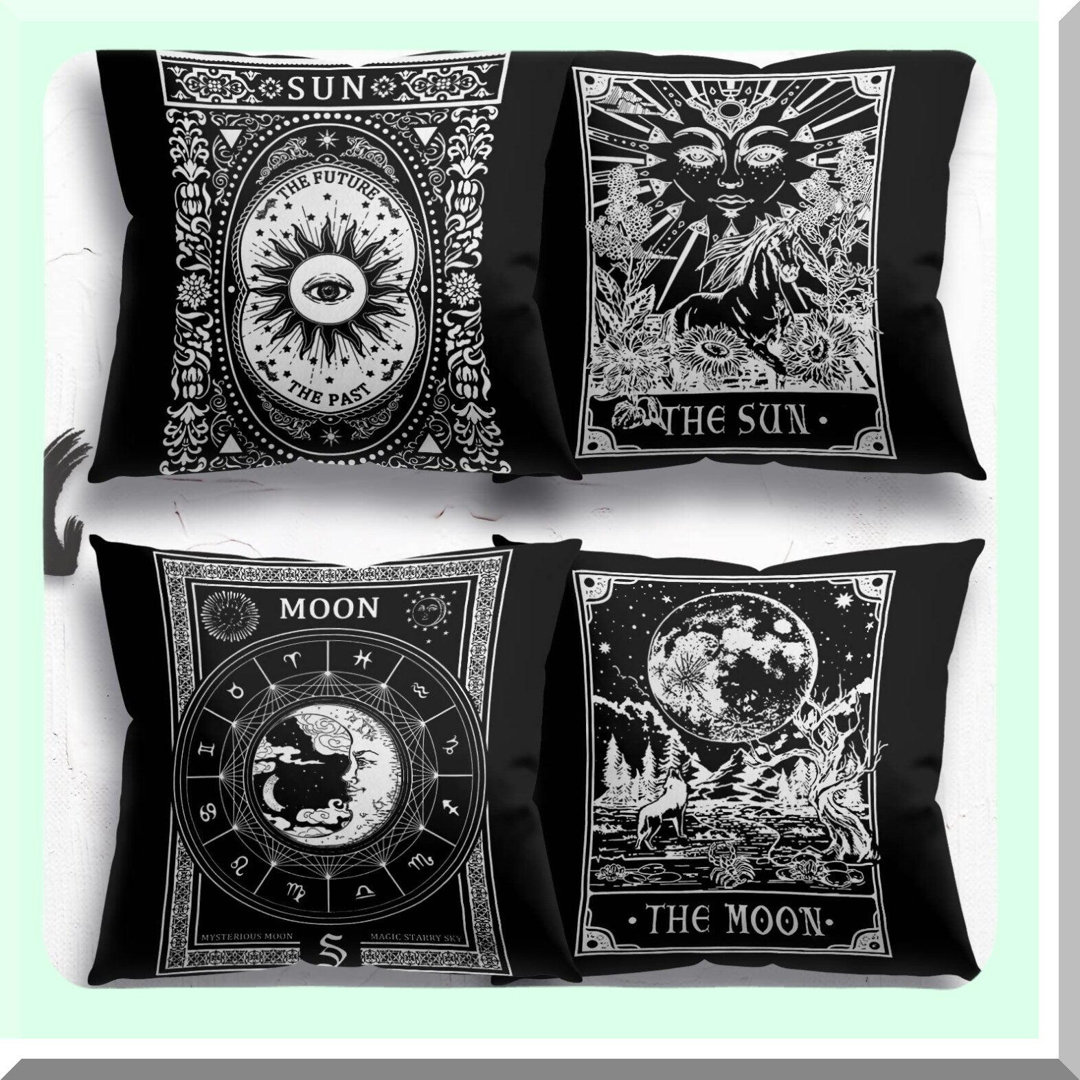 Mystic Tarot Reversible Pillow Cases - Set of 2 Gothic Throw Pillow Covers 18x18 for Home Decor & Oddities Gifts - Tarot Card Design