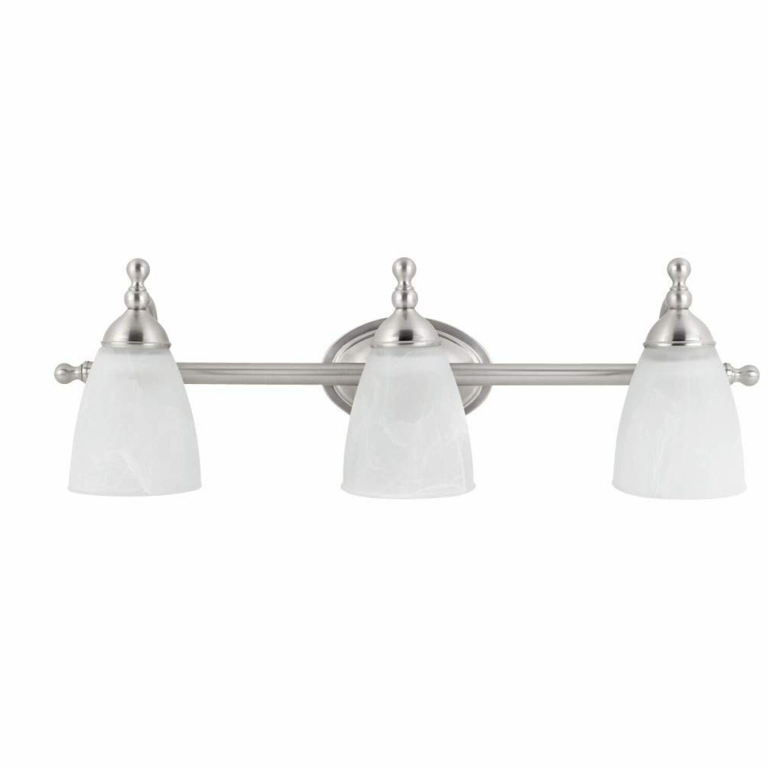 The 50783 23" 3-Light Vanity Lighting features a sleek nickel finish and alabaster glass shades that diffuse light evenly, providing a soft, welcoming glow. Its simple, clean lines make it suitable for various spaces, including bathrooms, kitchens, and bedrooms. The fixture requires three medium-based A19 60W bulbs (sold separately) and is fully dimmable with a compatible dimmer switch, allowing you to create the perfect ambiance. Easy to install, it comes with all necessary mounting hardware. Its versatile design complements any decor style, making it an ideal addition to enhance your homeβs lighting. Whether updating your bathroom or creating a cozy nook in your bedroom, this fixture offers both functionality and aesthetic appeal. Its classic look and adjustable lighting make it a practical choice for various interior settings, providing a bright, inviting atmosphere.
