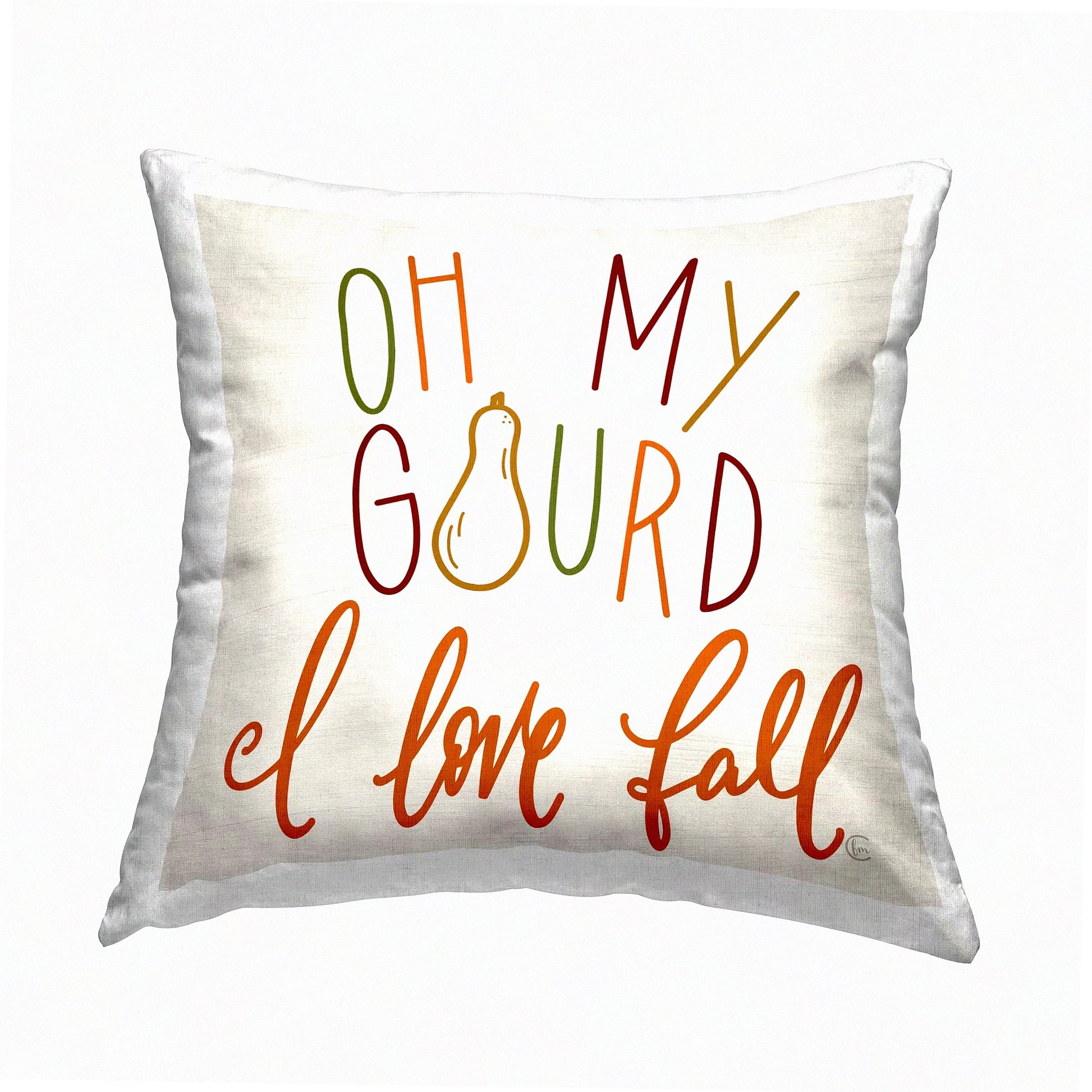 Autumn Harvest Calligraphy Throw Pillow - Fall Decorative Cushion Cover - 18x18 Beige - Fearfully Made Creations - Gourd Design