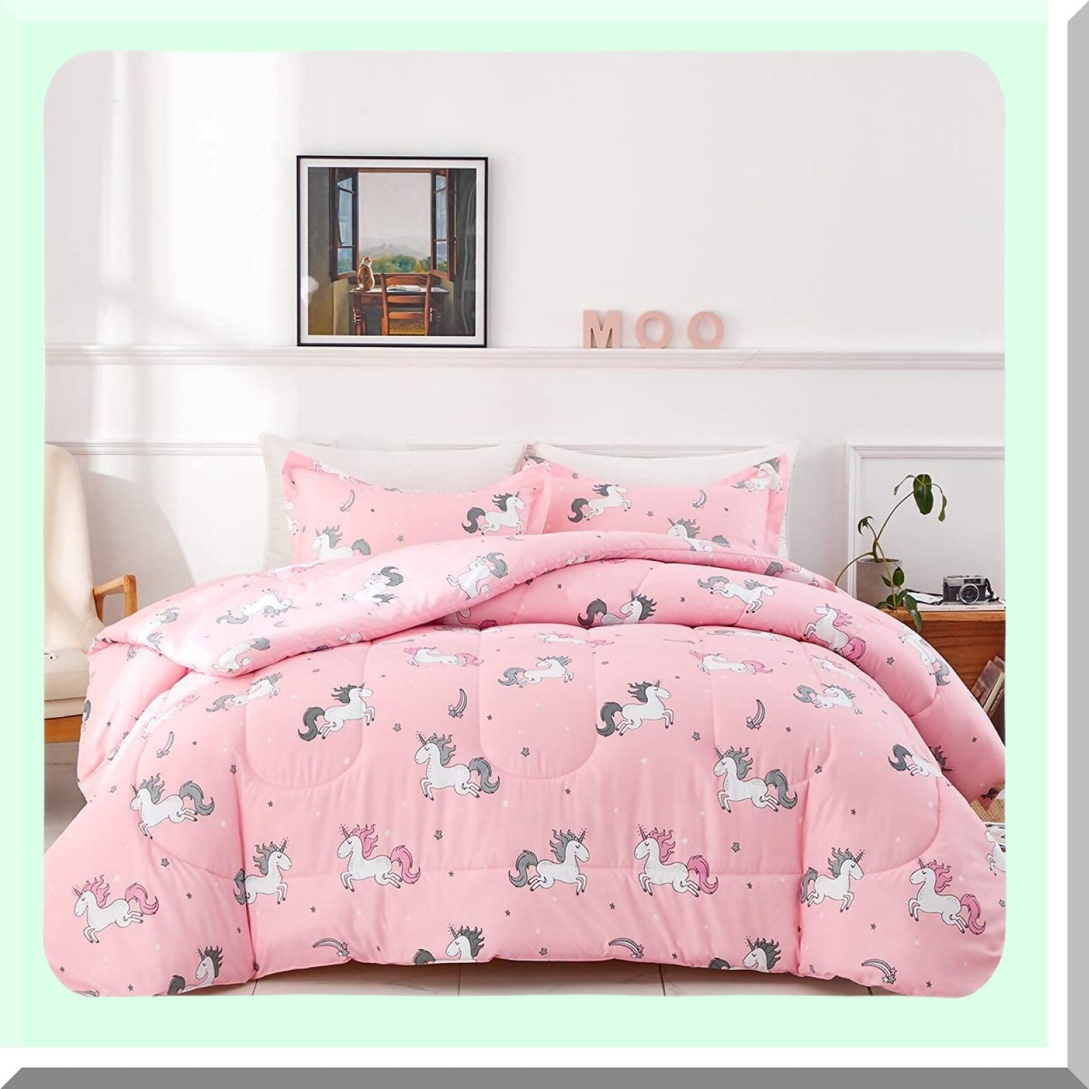 Unicorn Dream Bedding Set - Twin Size 6 Piece Comforter Set with Rainbow Star Design, Soft Microfiber Sheets and Pillow Shams - Pink and Reversible
