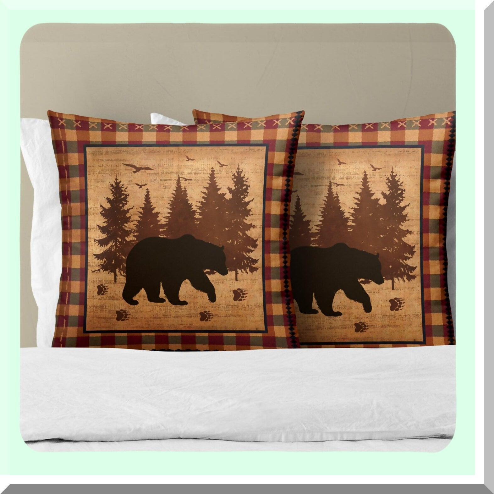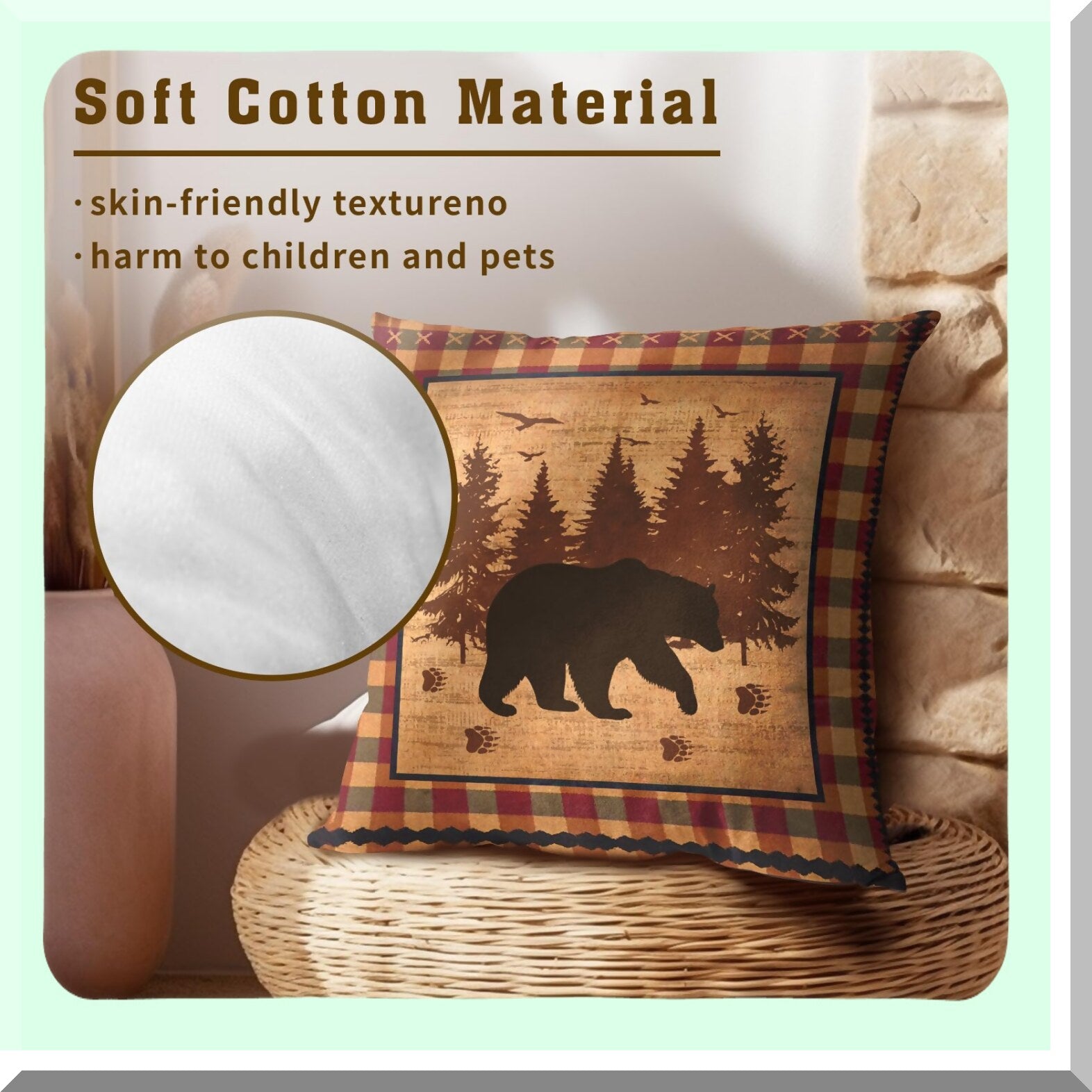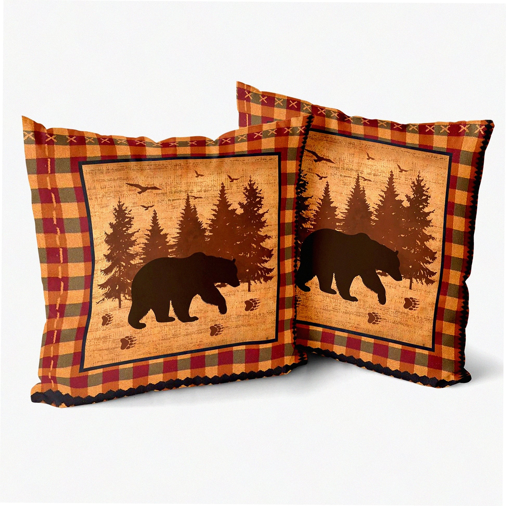 Forest Rustic Plaid Pillowcase Set - 18x18 Inch Wildlife Cabin Decorative Cushion Covers for Couch Sofa & Car - Vintage Square Black Bear Throw Pillows (Pack of 2)