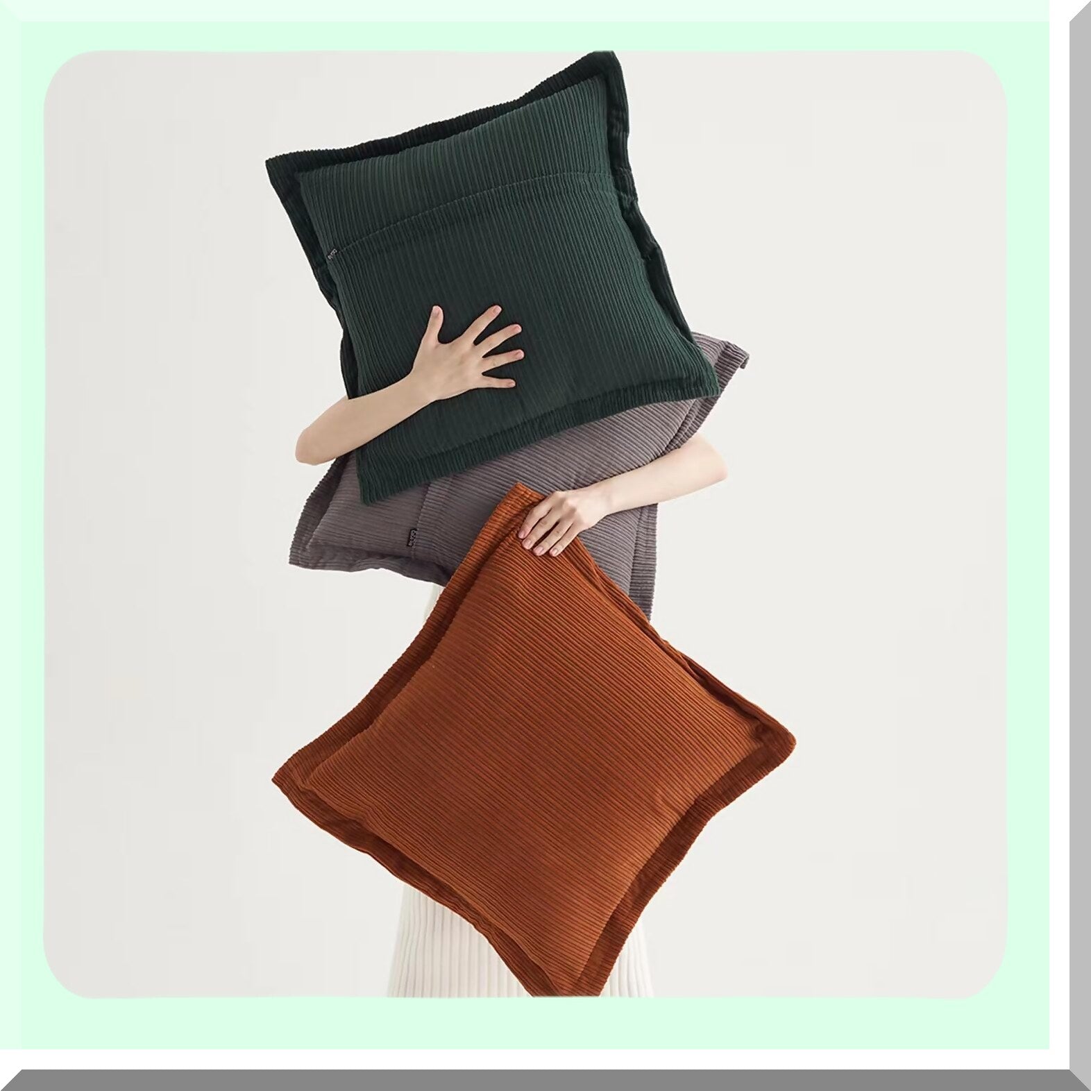The practical benefits of the trio of 20x20" hand-sewn corduroy pillow covers include enhancing the aesthetic of your space with sophisticated shades of gray, rich caramel, and deep forest green. The vintage stripes add a touch of elegance to any room. The covers are durable and easy to clean, making them a practical choice for everyday use. The 20x20" size is versatile and fits standard throw pillows, providing an easy way to update your decor. The variety of colors allows for mixing and matching to create a personalized look. Overall, these pillow covers offer a stylish and functional solution for decorating your home.
