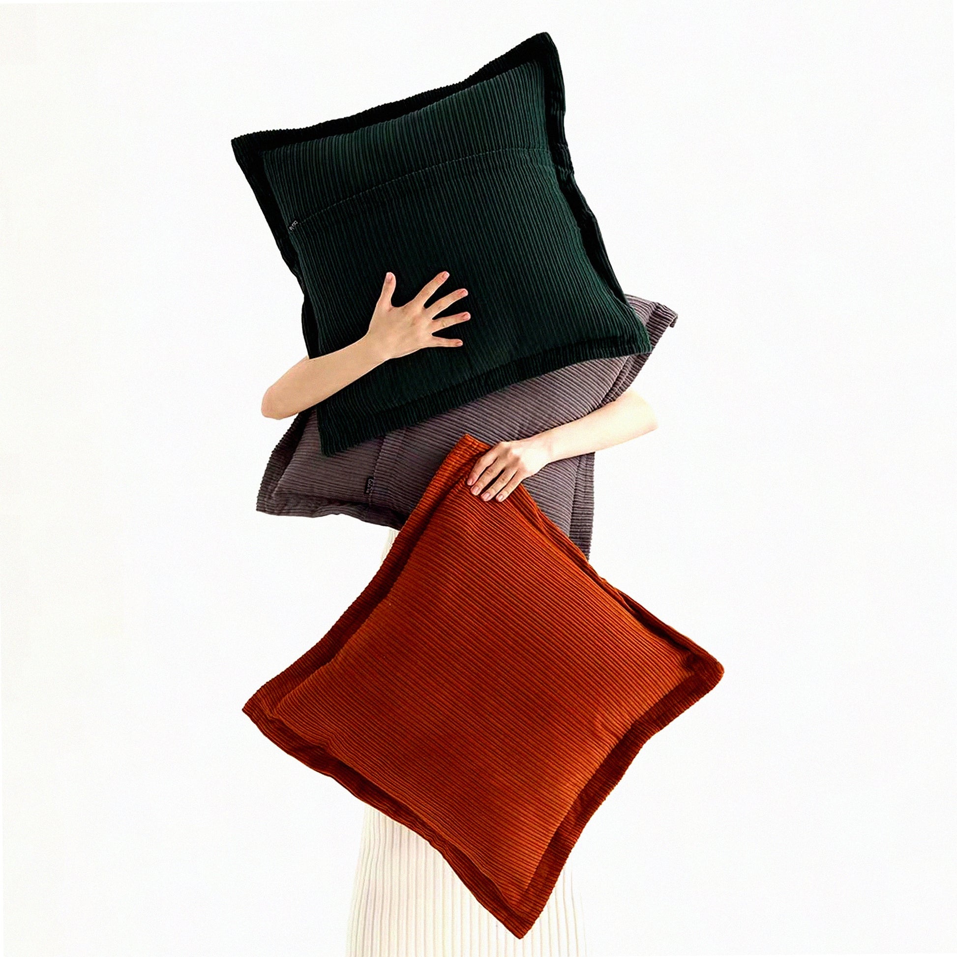 Boho Chic Corduroy Pillow Cover Set - 20x20inch Decorative Throw Pillow Covers in Neutral Grey, Dark Green, and Rust - Super Soft Textured Apartment Decor for Living Room Sofa Couch