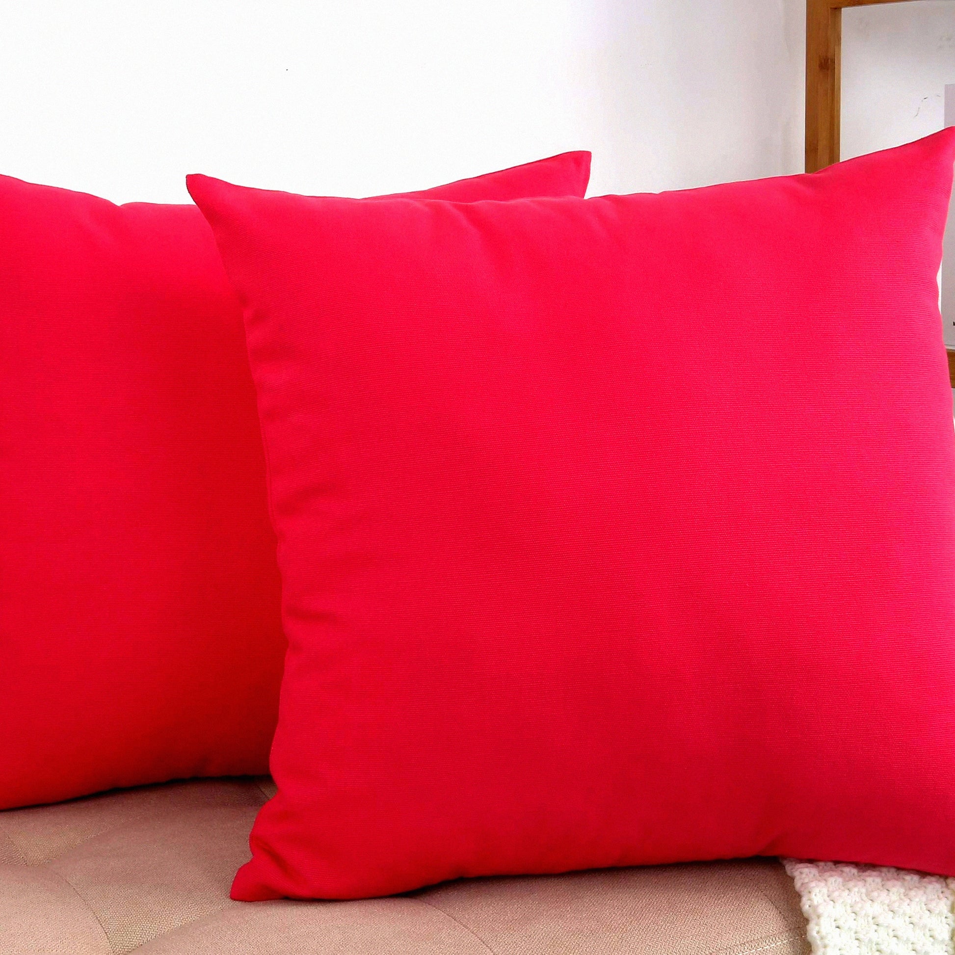 Canvas Cotton Throw Pillow Covers - Set of 2 Decorative Cushion Covers in Watermelon Red, 20"x20", 45 Color Options, Solid Design