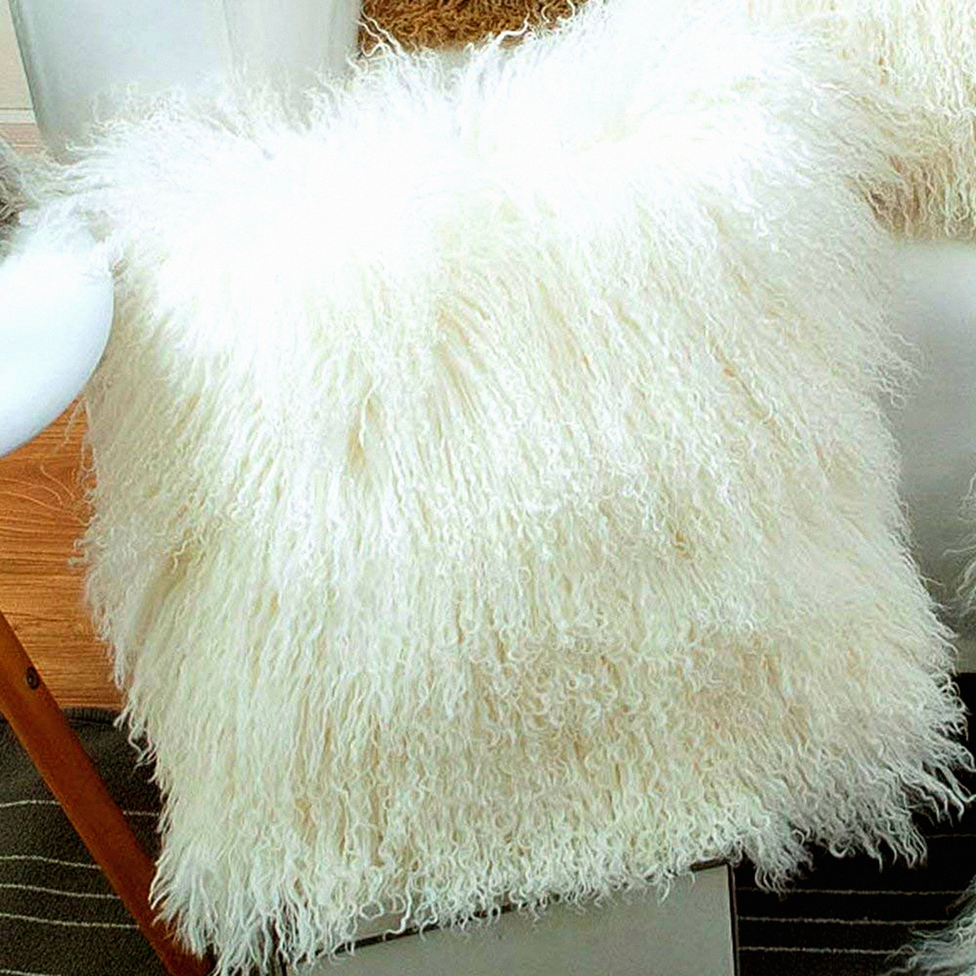 Luxurious White Mongolian Lamb Plush Pillow Cover - Soft Curly Sheep Cushion Case for Home Decor - Square Throw Protector - 16 X 16 Inch Wool Pillow Cover