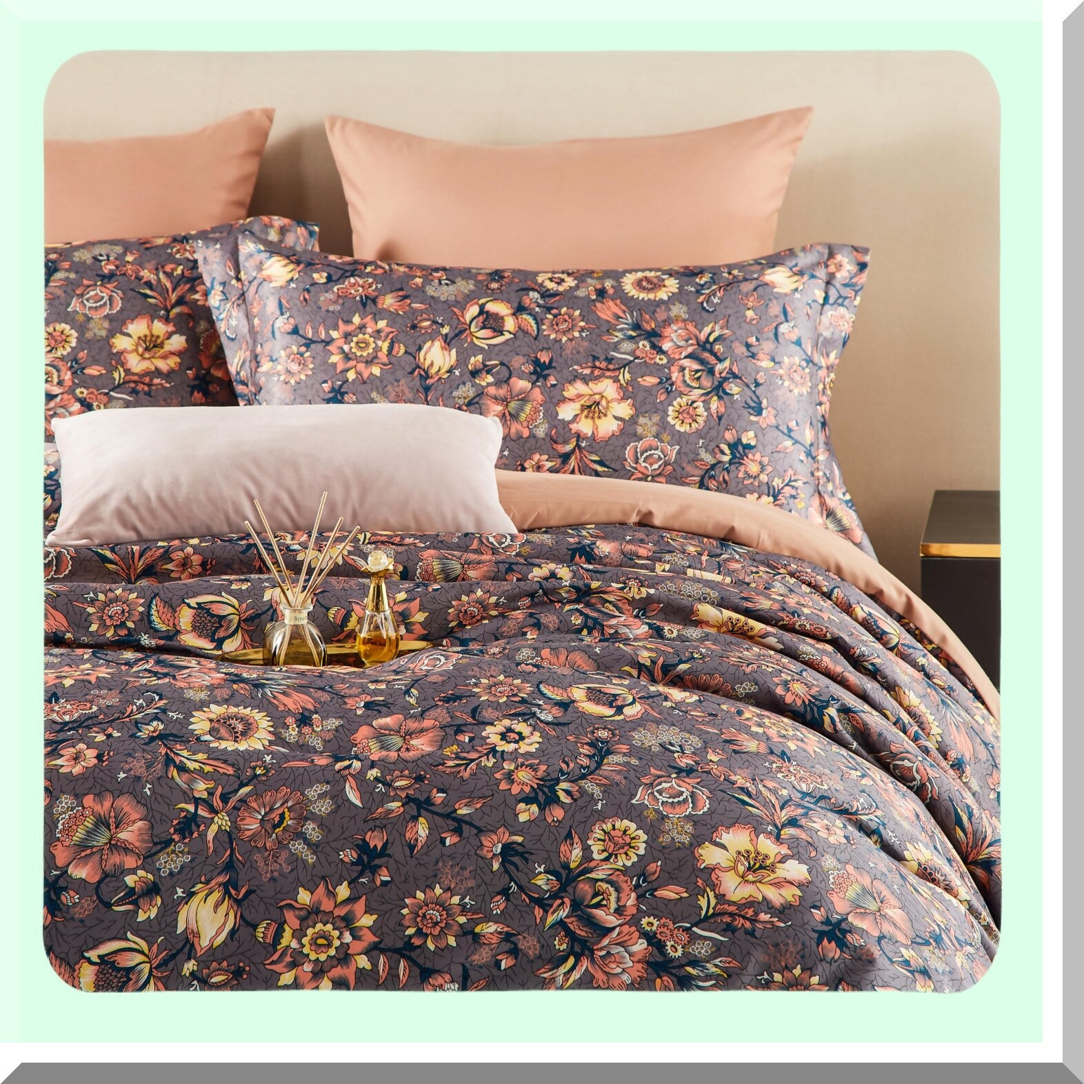 Vintage Floral Bliss 7-Piece Queen Comforter Set - Soft & Lightweight Bedding for All Seasons - Brown Floral Bed in a Bag Queen Size