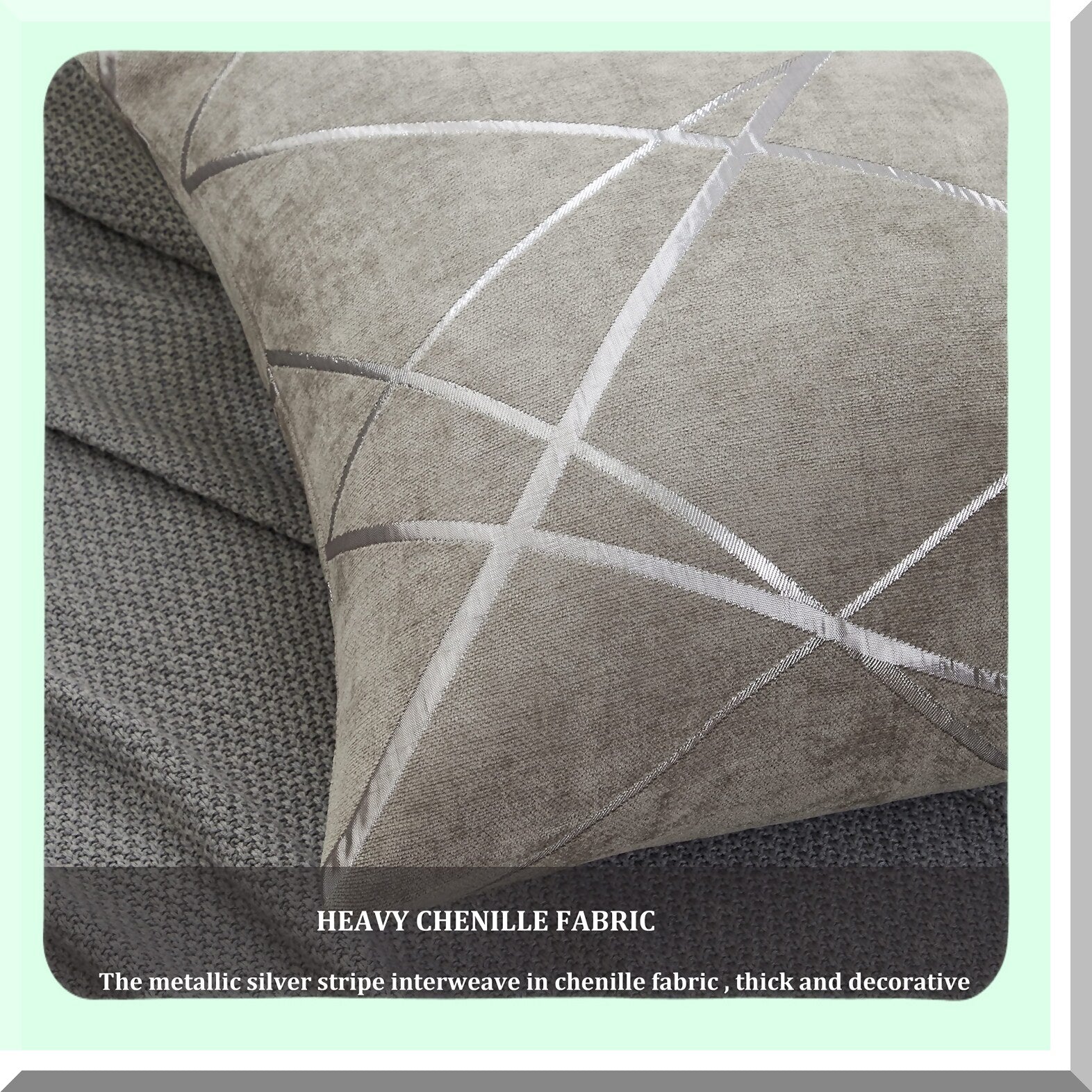 Luxury Silver Stripe Chenille Cushion Covers - Set of 2, Decorative Grey Throw Pillow Covers for Sofa, Thick Square Pillows 20x20 - Silver Grey