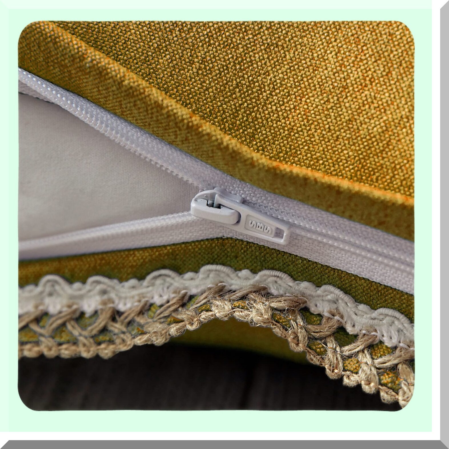 Gold Linen Farmhouse Pillow Covers - Set of 2 | Burlap Trimmed Cushion Covers 12x20 | Tailored Edges for Couch, Sofa, Chair, Living Room Decor