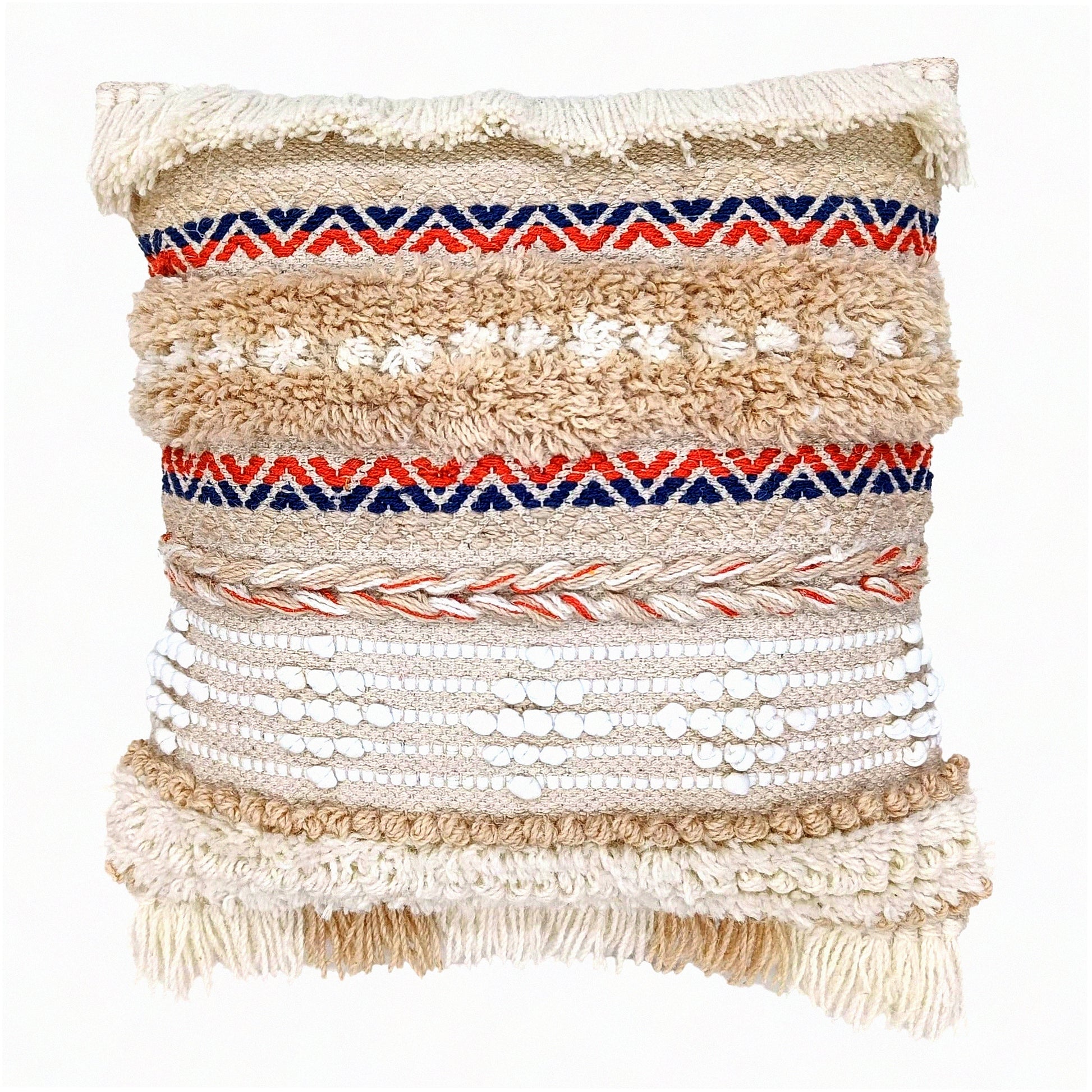 Farmhouse Boho Tufted Wool Cotton Cushion Covers - Soft Textured Square Pillow Cases - Durable Sofa Couch Bed Decor - 14" Square