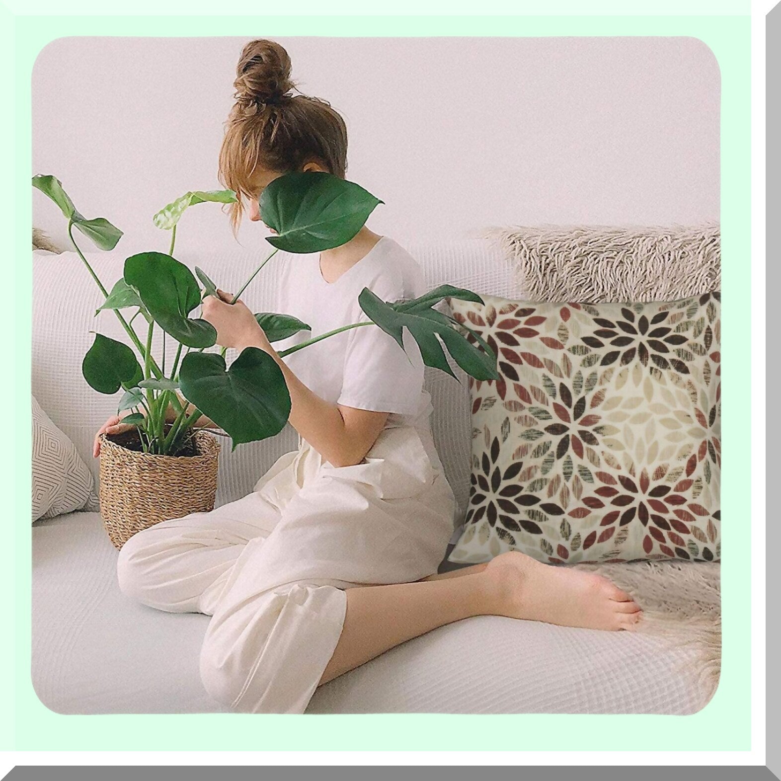 Rust Geometric Dahlia Pillow Covers - Set of 2 Farmhouse Linen Cushion Cases 20x20 Inch - Outdoor Decorative Throw Pillows for Sofa & Bedroom