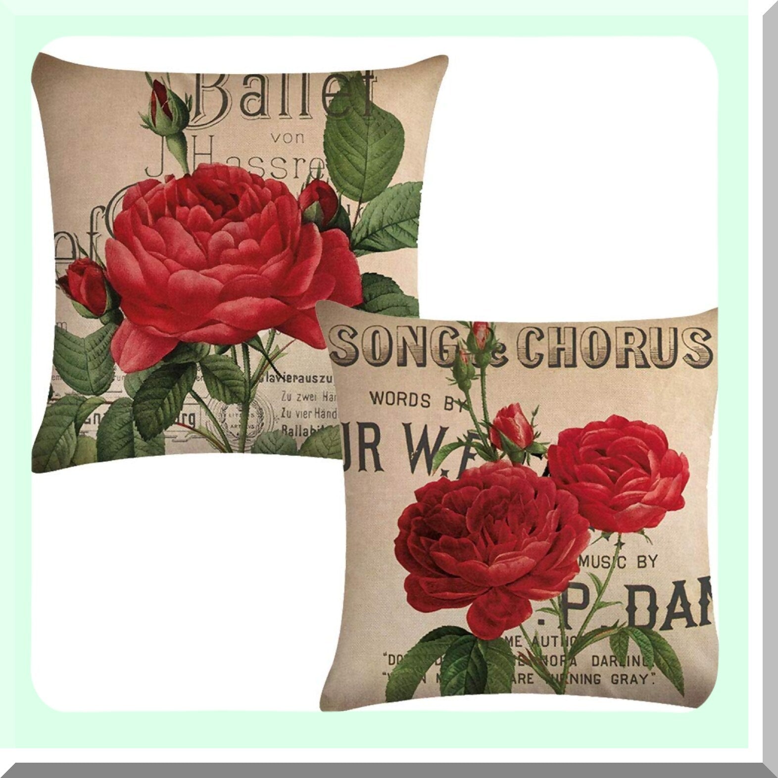 Blooming Rose Garden Decorative Pillowcases - Set of 2, 18x18 Inches, Square Throw Pillow Covers for Sofa, Couch, Bed - Red Rose Flower Pattern