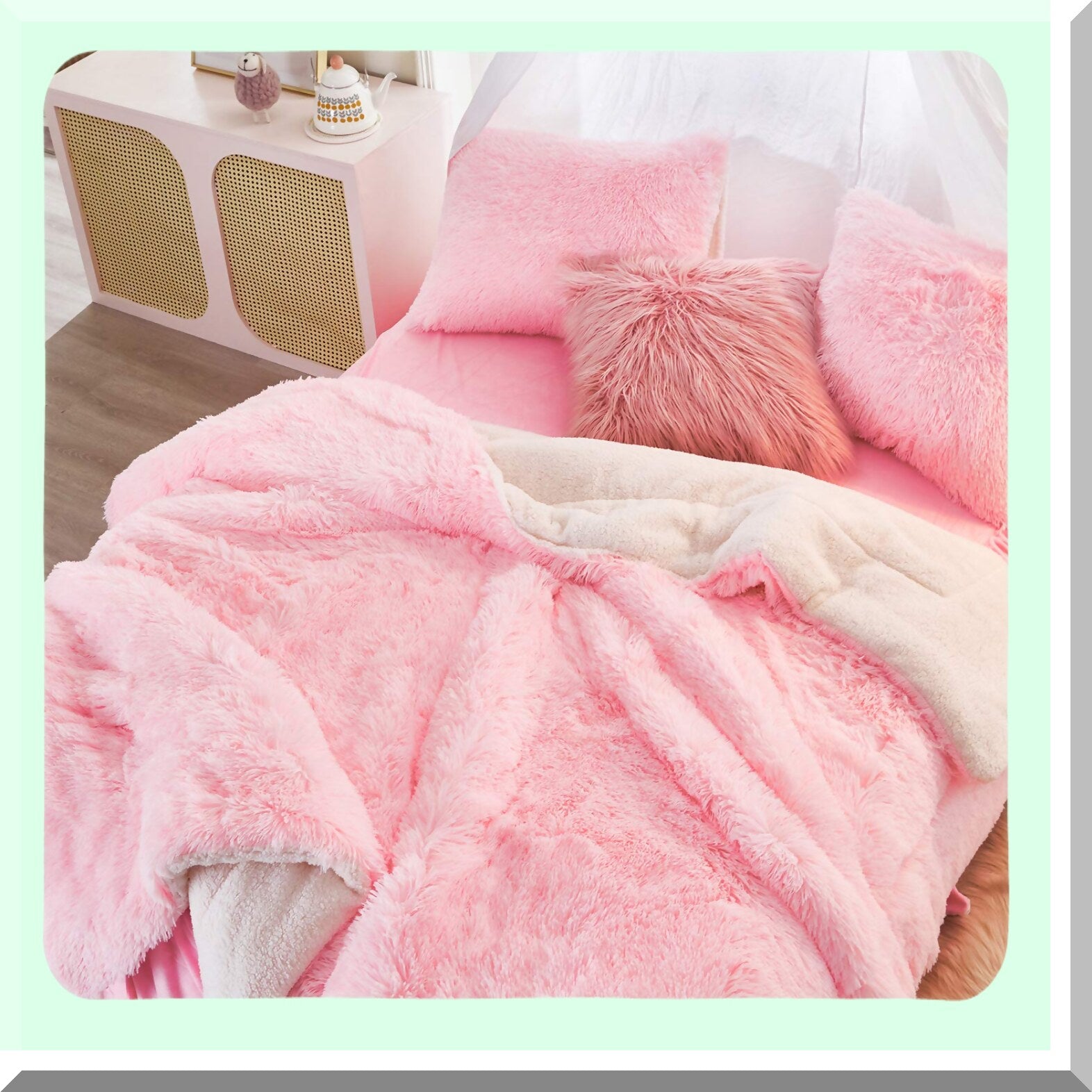 Luxury Sherpa Plush Comforter Set - Cozy Winter Bedding - Twin Size Shaggy Fluffy Pink Bed Set - Ultra Warm Reversible 3-Piece Ensemble - 68x86 inches