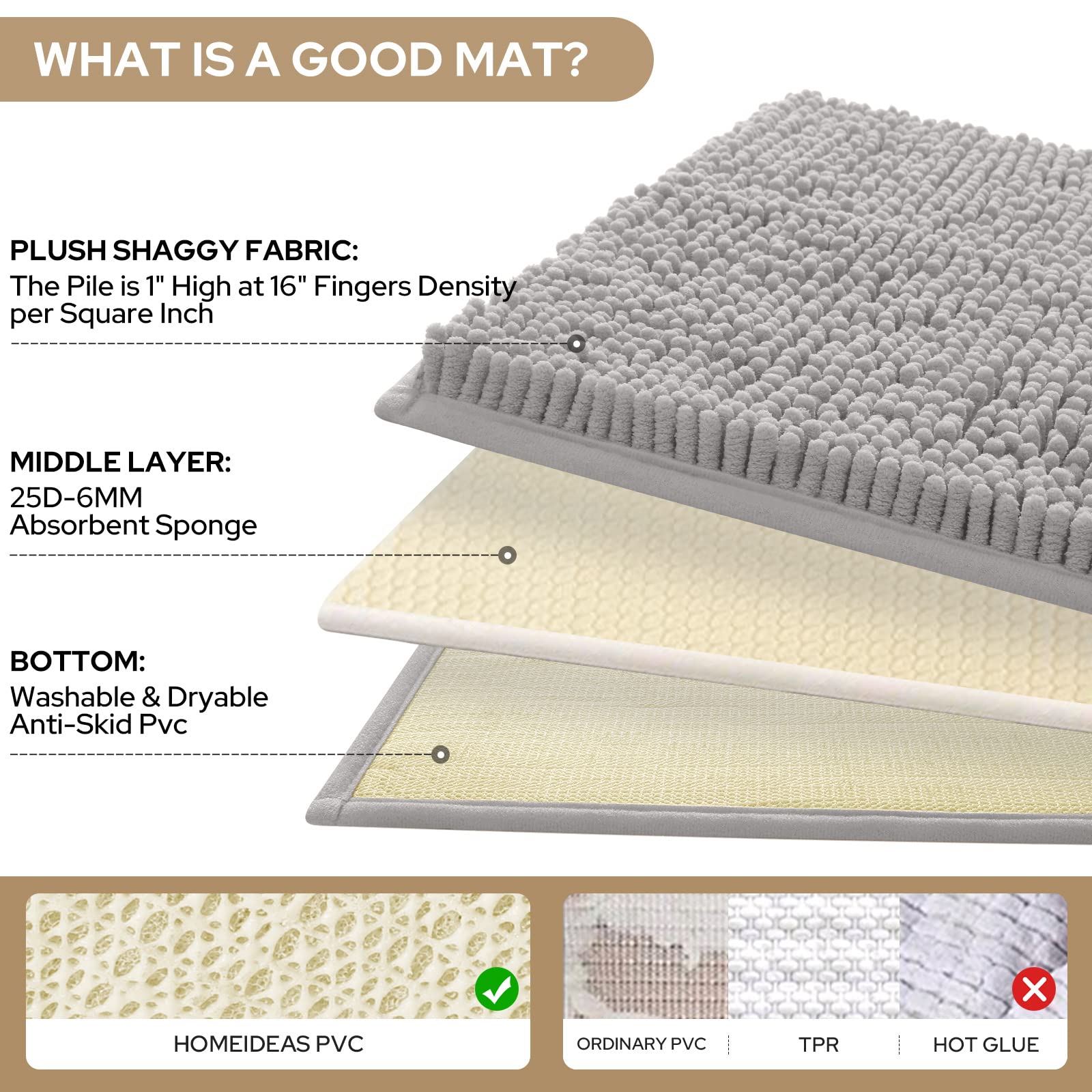 3 Pieces Bath MatsSoft Microfiber SurfaceHIGH WATER ABSORBENCY Bath mat soft microfiber super absorbent water after shower.No more wet mat on the bathroom floor, Also It has unique fiber-locking technique and neatly wrapped sides, not easy to get hair loss or offline. Much better than brands in the market.ANTI- PVC BottomNon- bottom is made of PVC This anti-skid backing has practically resistance on the floor surface, that it wont or slide to keep you more safe and cozy. It doesn't matter how many times you wash it, it stays the Origina.MACHINE WASHABLEWash on cold with mild deter t.Use only non-chlorine bleach when needed, hang to dry or air dry flat.Do not Bleach or Dry Clean. Please do not use the dryer or put it in hot water.NO RISK PURCHASE100% Satisfaction Warranty. If there has any problem with our bath mats, please do not hesitate to contact us which we will work with you make it right. Return of goods without reasons within 30 days.
