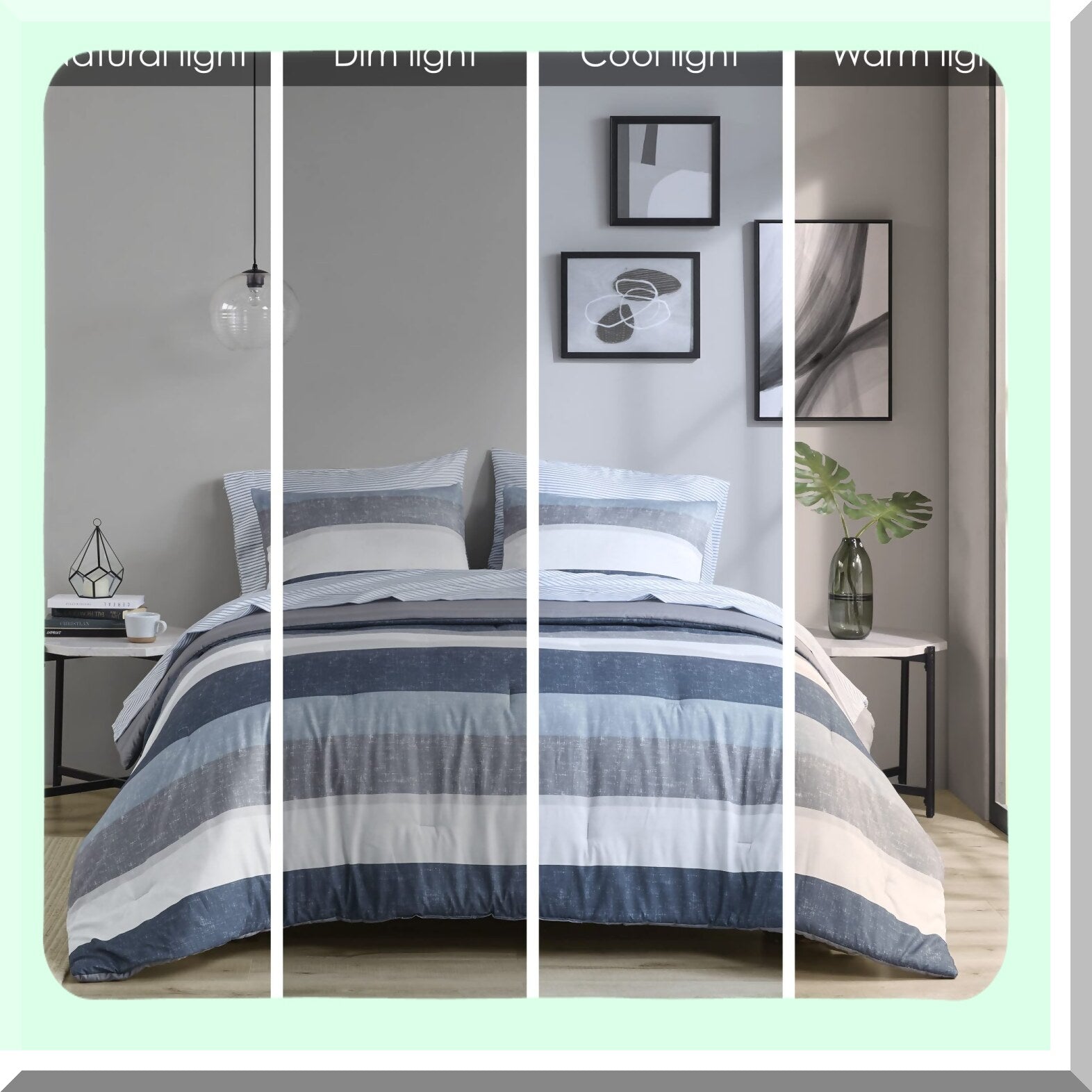 California Blue Stripe Comforter Set - Modern All Season Bedding with Matching Sham & Sheet - Jaxon 7 Piece Bed in a Bag