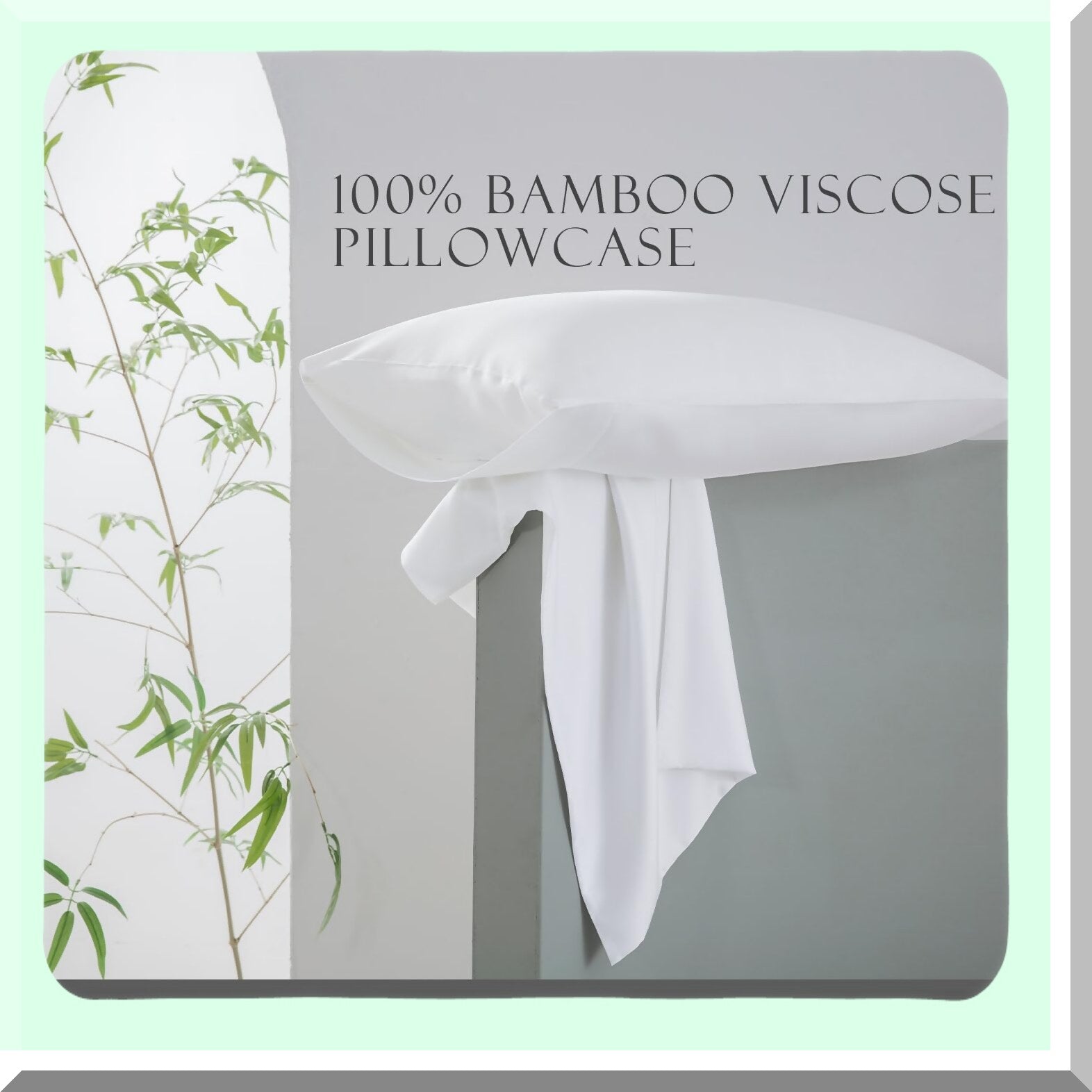 BambooLux Silky Soft Cooling Pillowcase Set - 100% Viscose Bamboo, Oeko-Tex Certified, Breathable Envelope Closure - Queen Size, White (Pack of 2)
